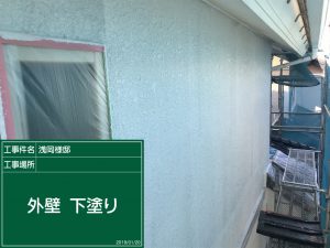 上の写真は下塗り後になりますが、下塗りは色を付ける塗料が
