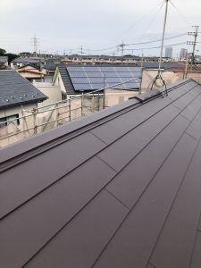 施工後の写真ですが、既存と同じように横方向に葺いていくので