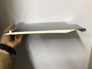 ガルバリウム鋼板というアルミと亜鉛の合金で出来ているので、錆びにくいのと断熱材があることで