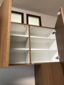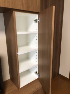収納は、高さや棚の枚数を自由に変えることのできる可動棚になりました。