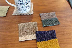 お好きなカラーのリネン生地を選び、段ボールで作る簡易的なキットを使いながら、裂き織ならではの表情と味わいのあるコースターを作るワークショップを開催します。
