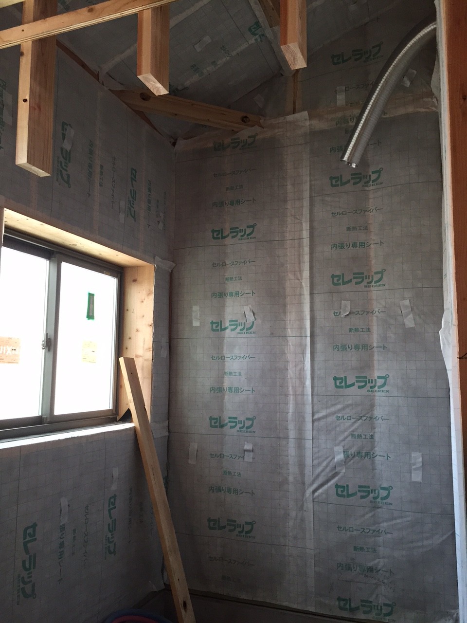 さらに、上に見える白いシートはセルロースファイバーを吹き込むためのシートです。