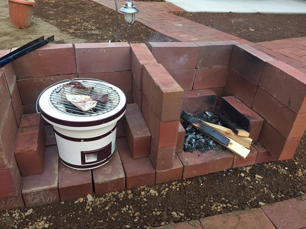 炉台は外構であまったレンガをテキトーに積んだだけです。