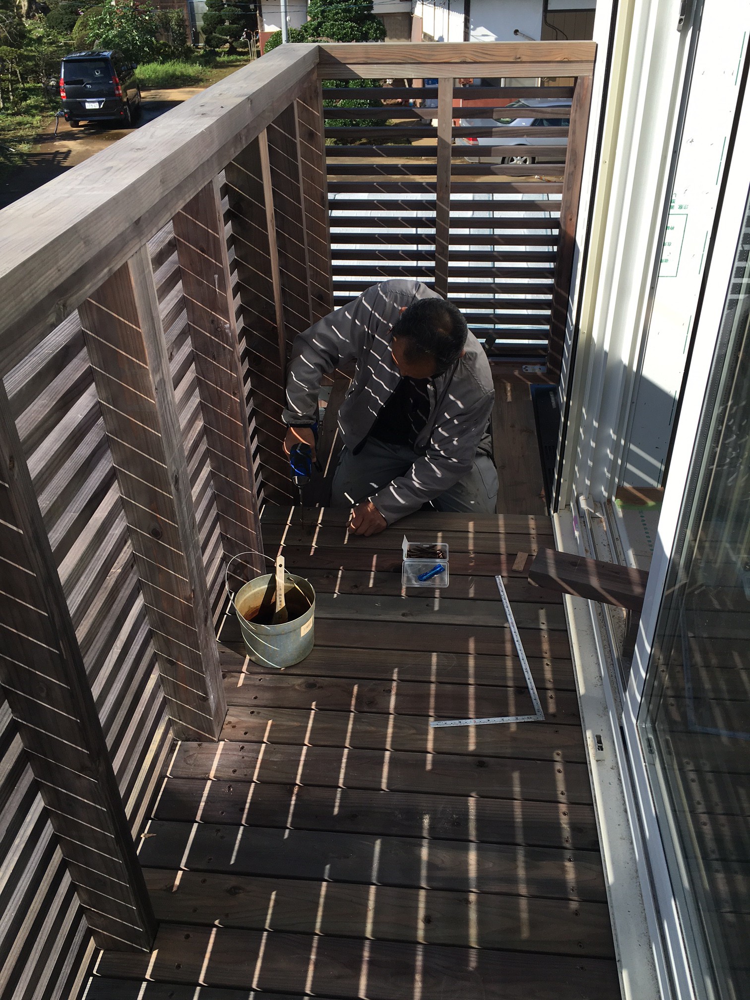 千葉県産の赤身の杉+ウッドロングエコで長持ちするバルコニーになります!
