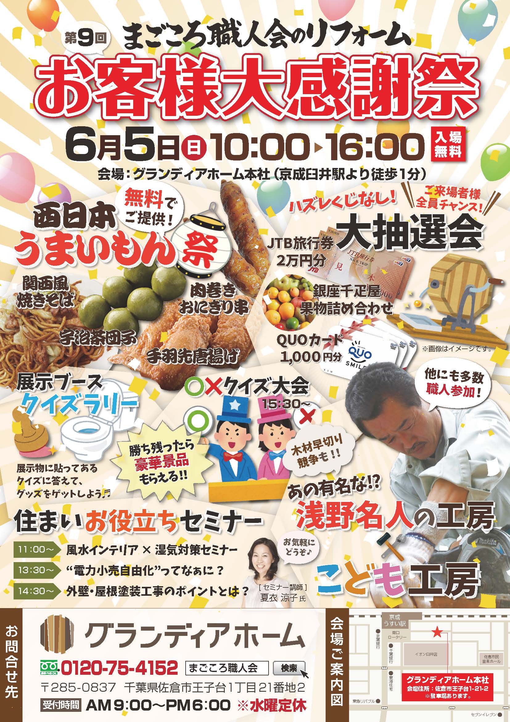 今回で第9回目の『お客様大感謝祭』の会場は、京成臼井駅近くの本社ショールームと駐車場になります。
