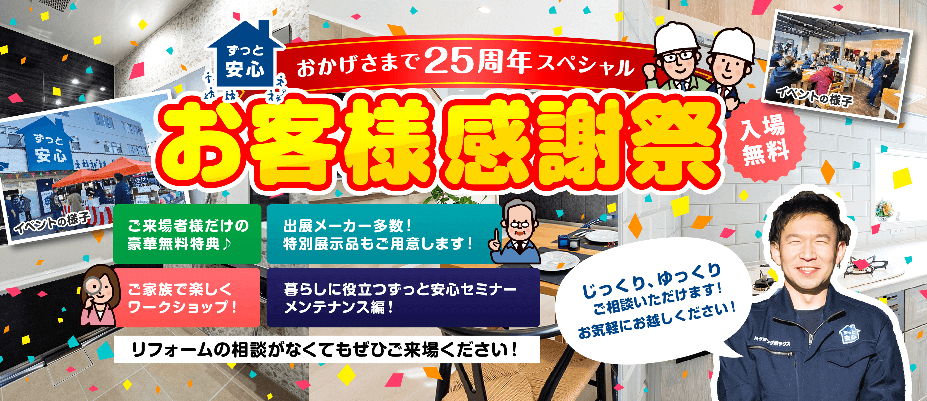 ご注意点として、ご参加いただけるのは当社でリフォームをさせていただいたお客様に限ります。お客様には事前に招待状をお届けするのでお待ちください。