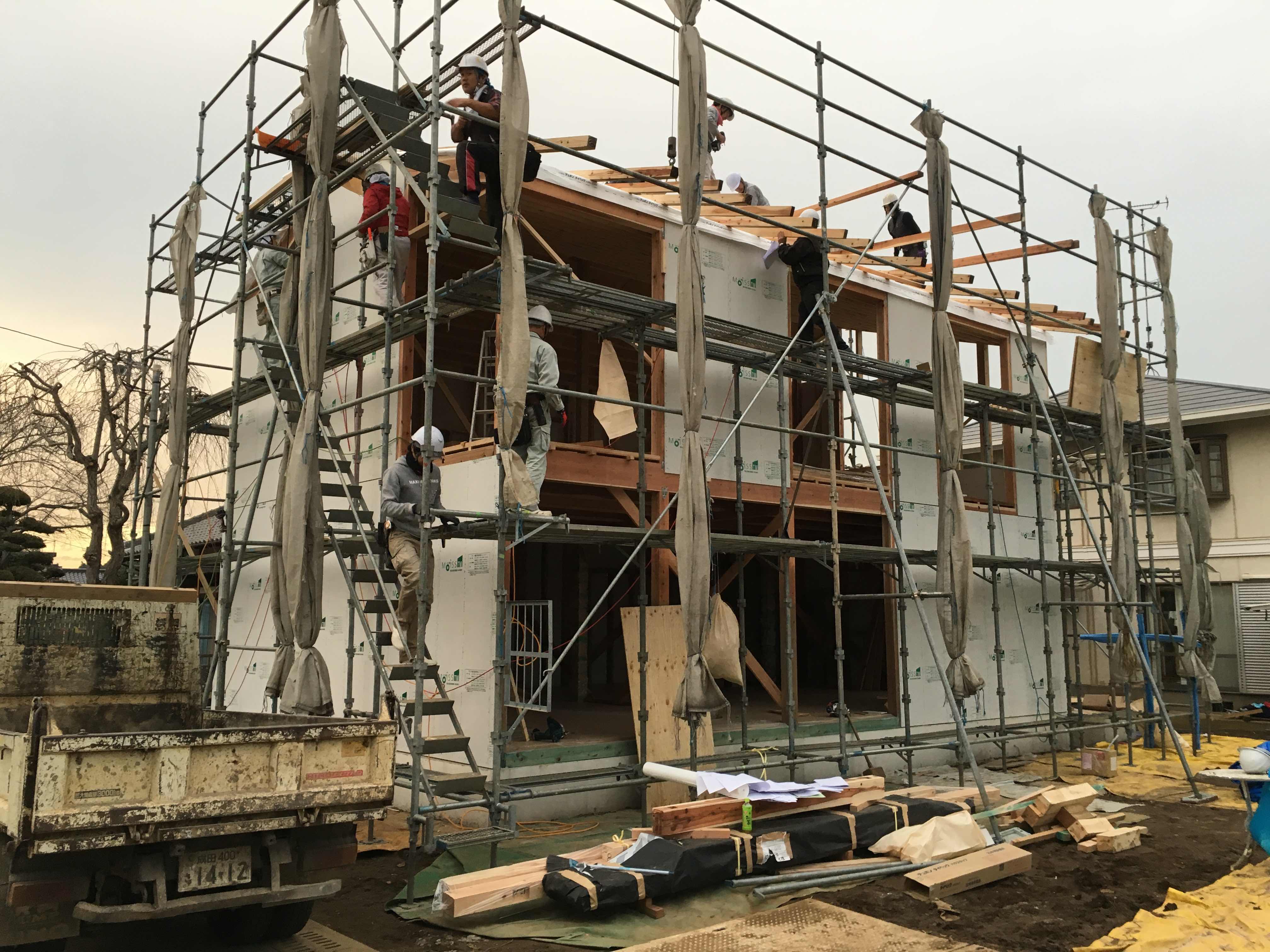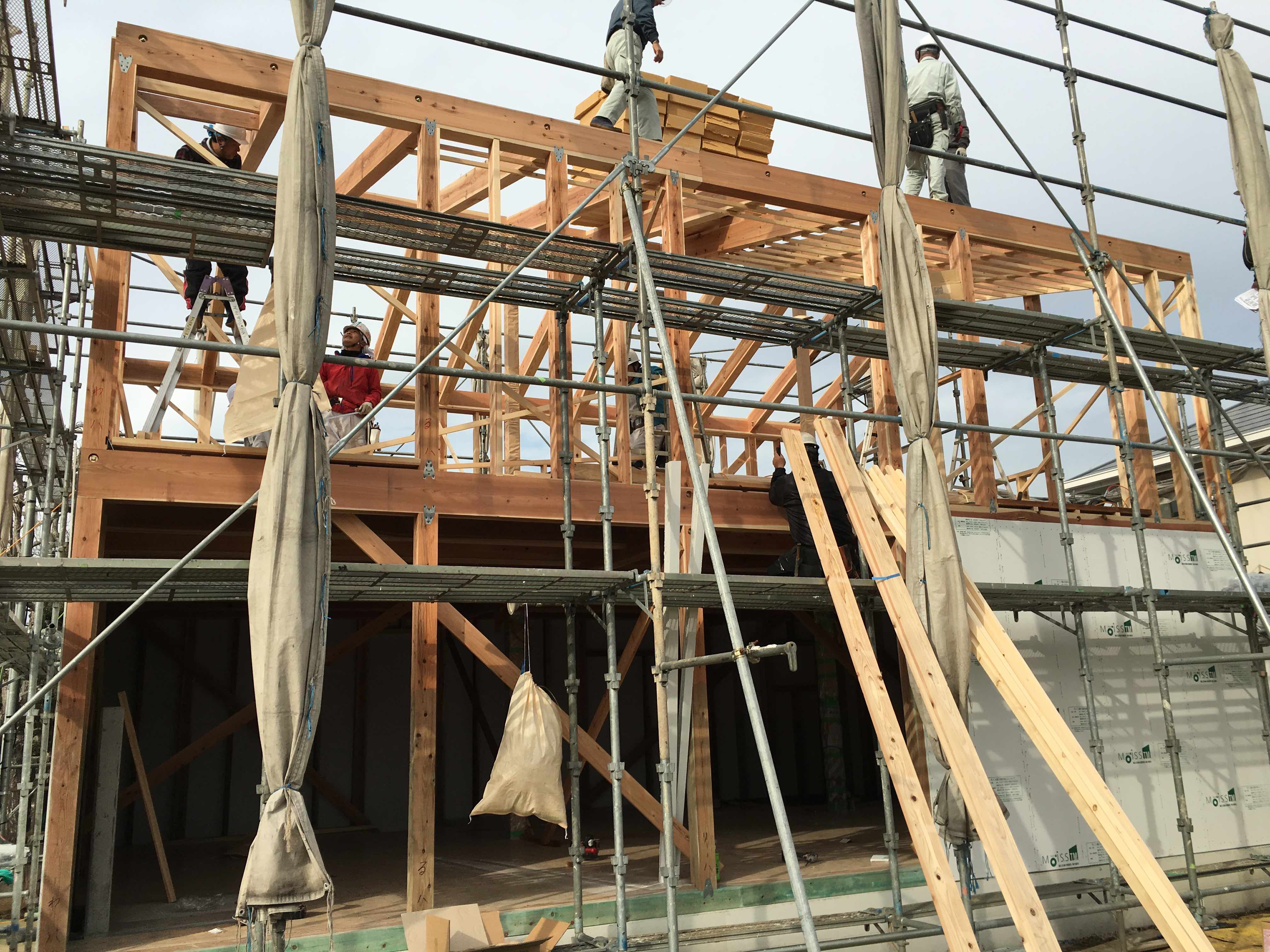 昨日、成田市新駒井野にて新築住宅の建て方工事を行ないました。