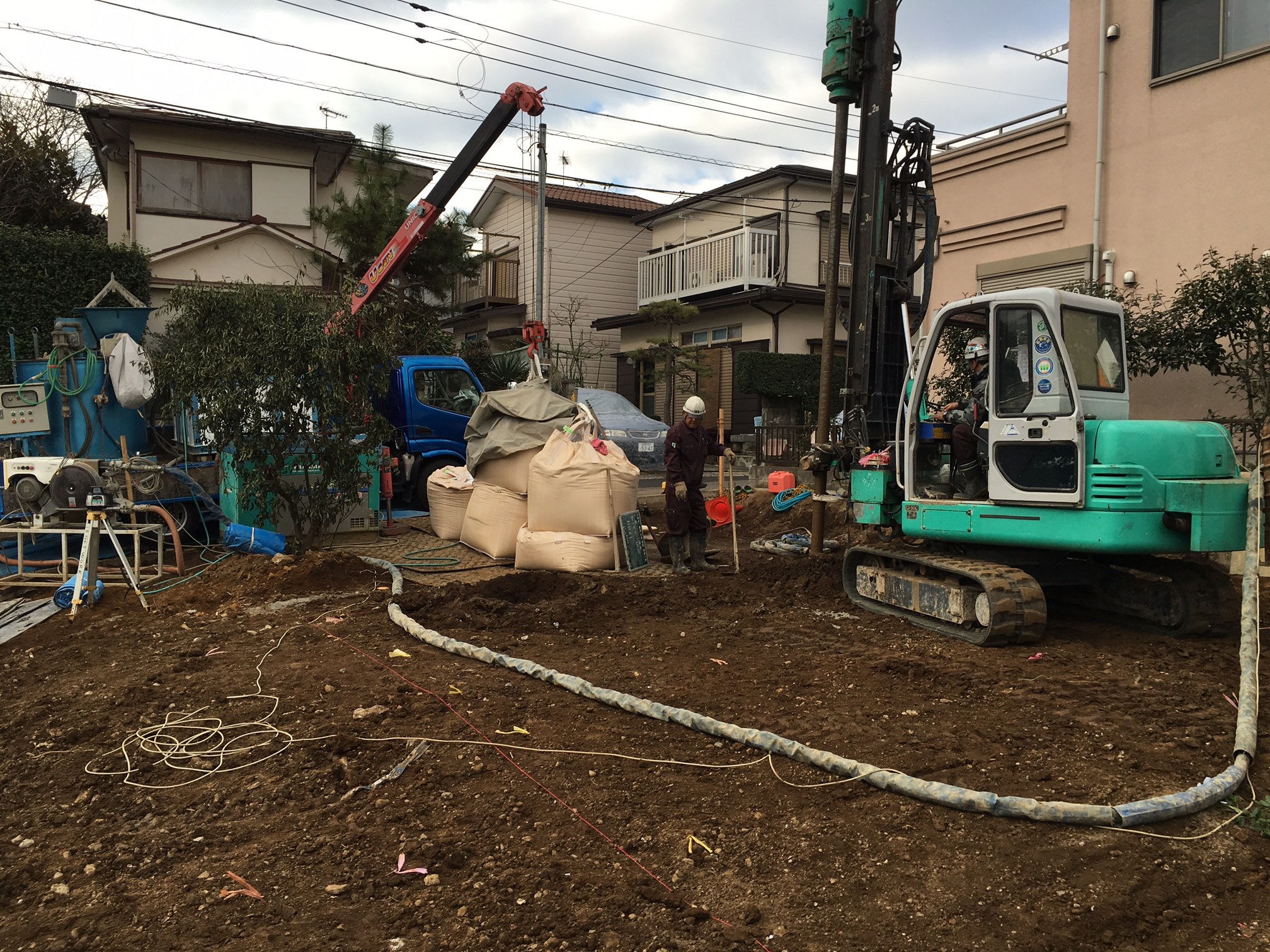 工事しているのは、基礎工事の前の“地盤改良”になります。