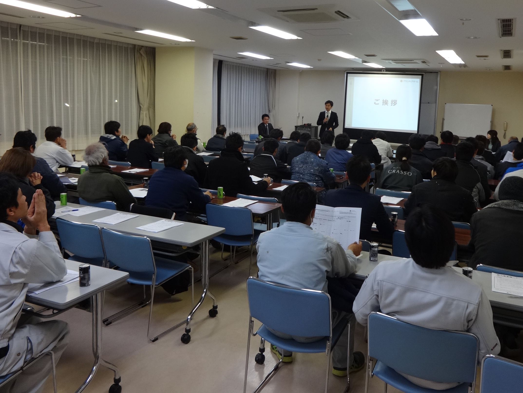 私の挨拶からはじまり、現場マナーや各現場の工程報告、お客様からいただいたご意見等の共有を行いました。