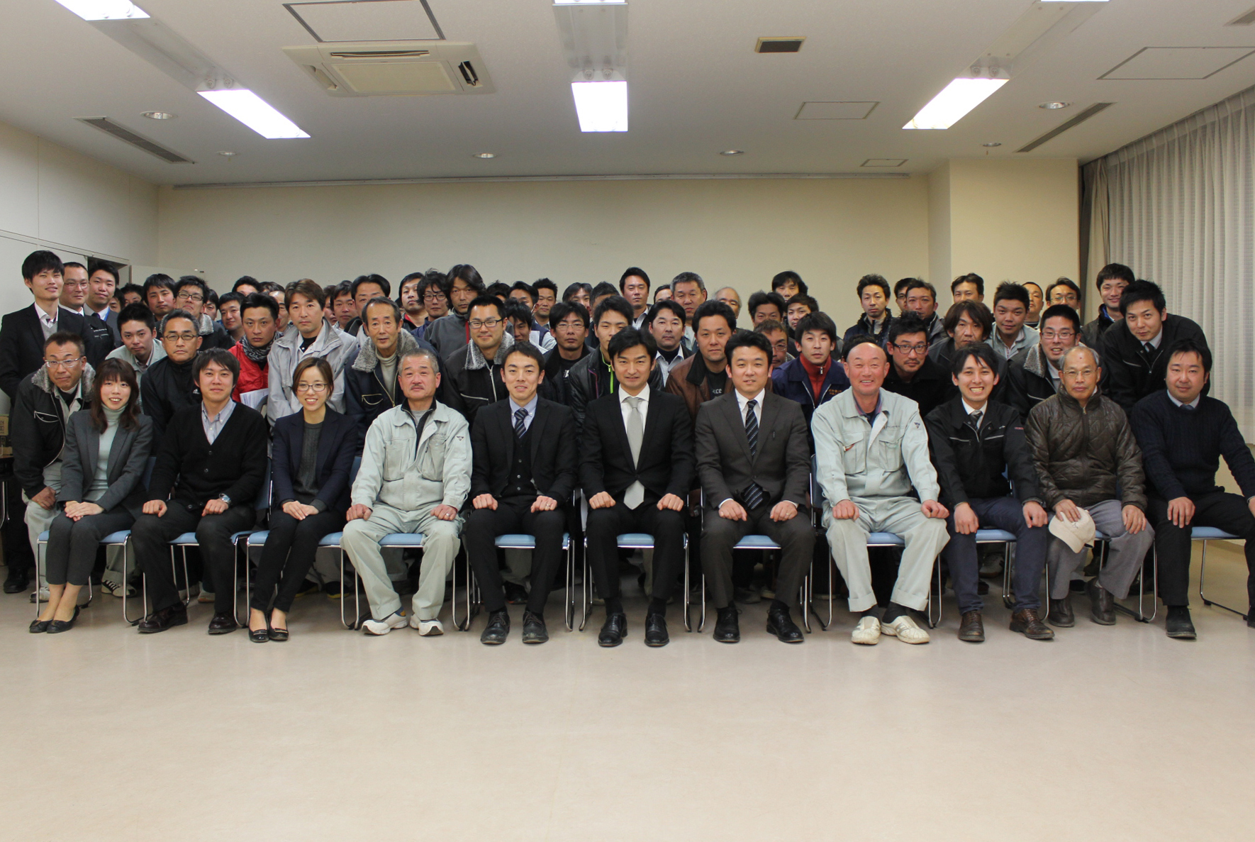 毎月一度の『まごころ職人会ミーティング』では、棟梁や親方職人が集まり打ち合わせをしていますが、今回の安全衛生大会では普段は集まらない現場で作業をしている職人も集まりました。