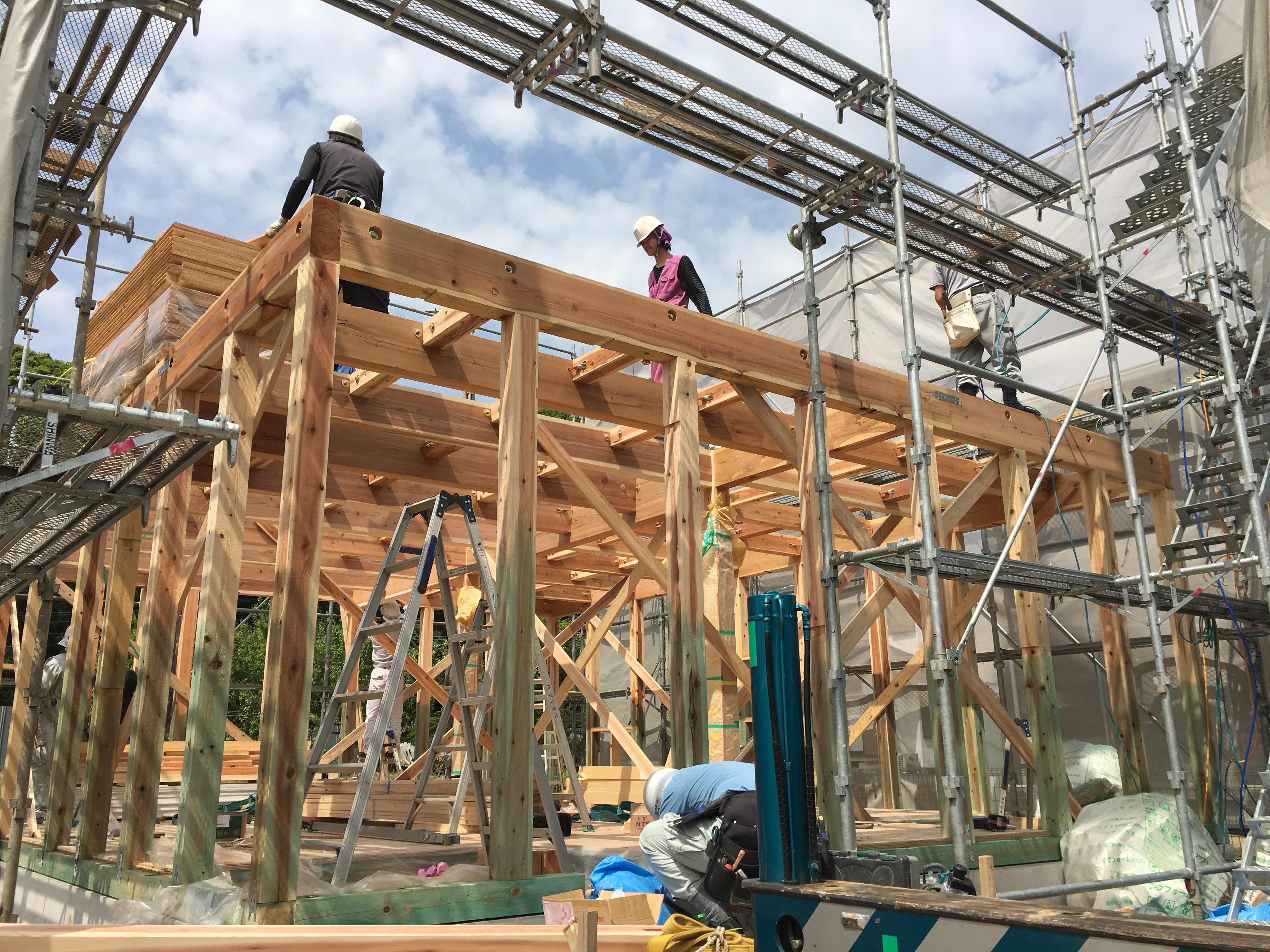 同時開催として、昨日建て方工事を行ない上棟した現場では『建築中の現場見学会(予約制)』を開催します。