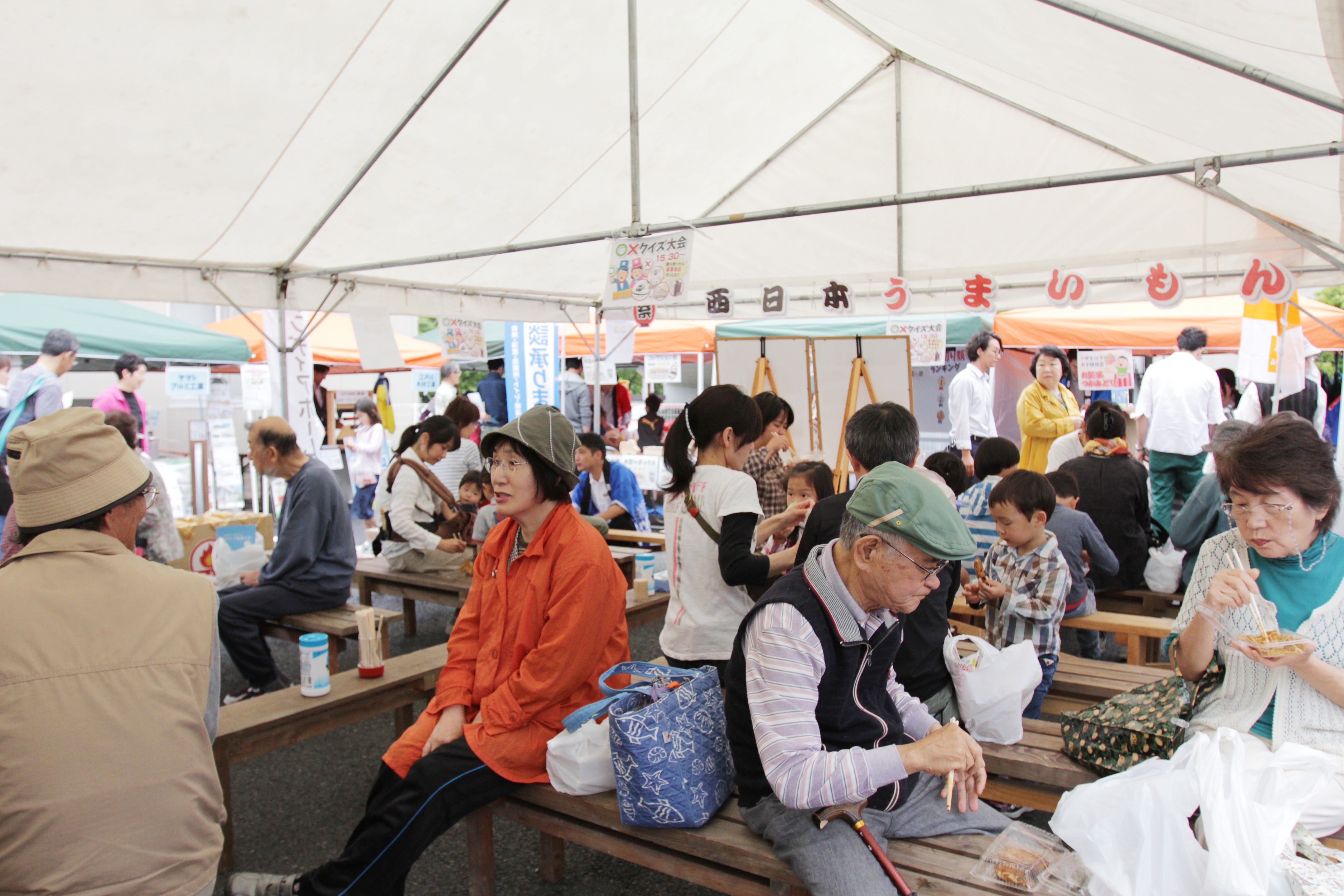 ▲今回は『西日本うまいもん祭』ということで従業員と職人がお客様に飲食物を振舞いました。