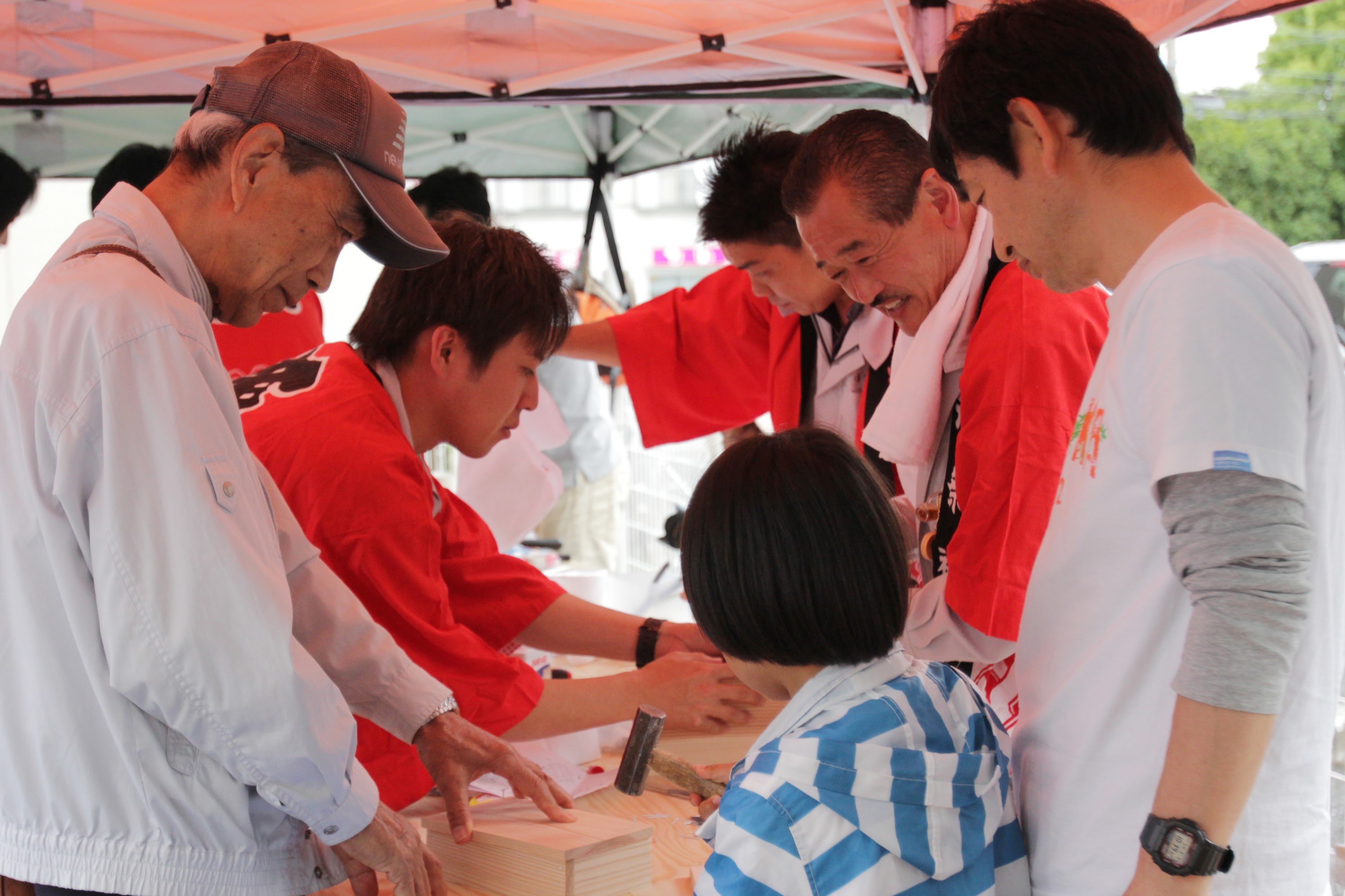 ▲看板職人の浅野は「こども工房」で、木のおもちゃを作りながら子どもとふれあっていました。