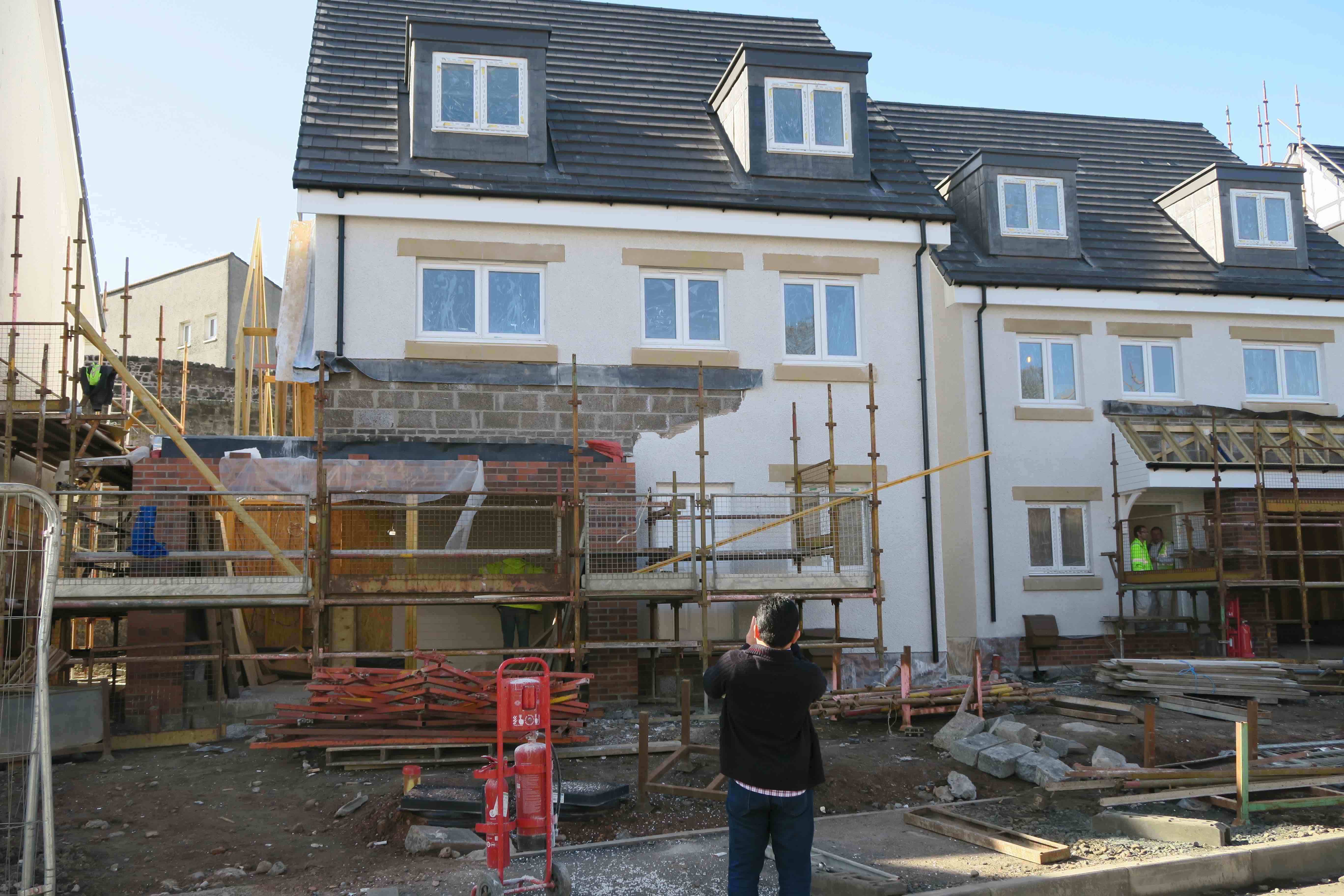 この日でイギリス、スコットランドに来て3日目になっていて、石造りの重厚感ある建物ばかりが立ち並んでいる街並みを見てきましたが、あるところにディベロッパーが開発している住宅地がありました。