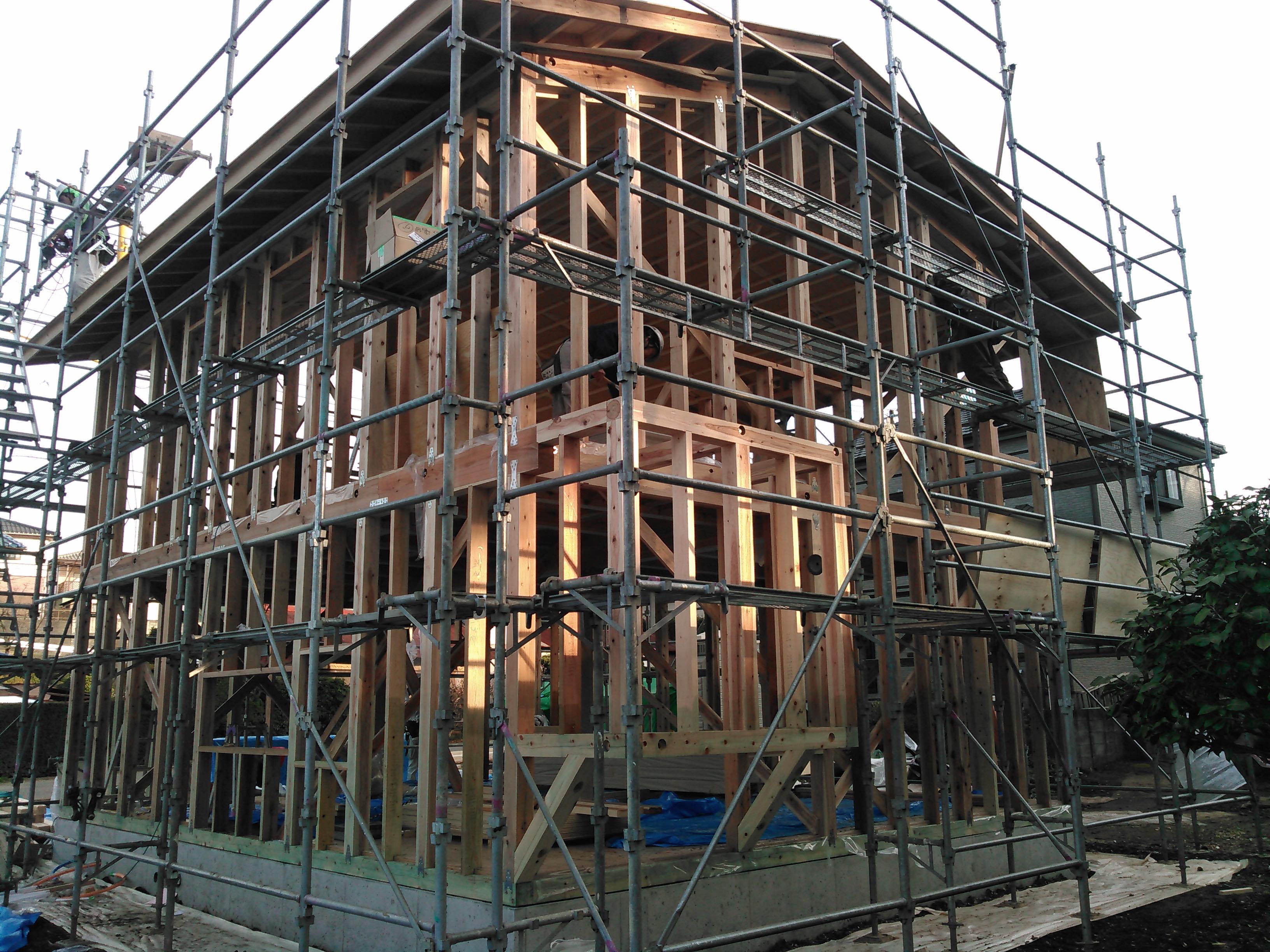 建築中なので、できるだけ今日の写真のように骨組みである構造材が見える状態が良いのですが、工事の進捗具合によってはあまり見えないことになるかもしれません。
