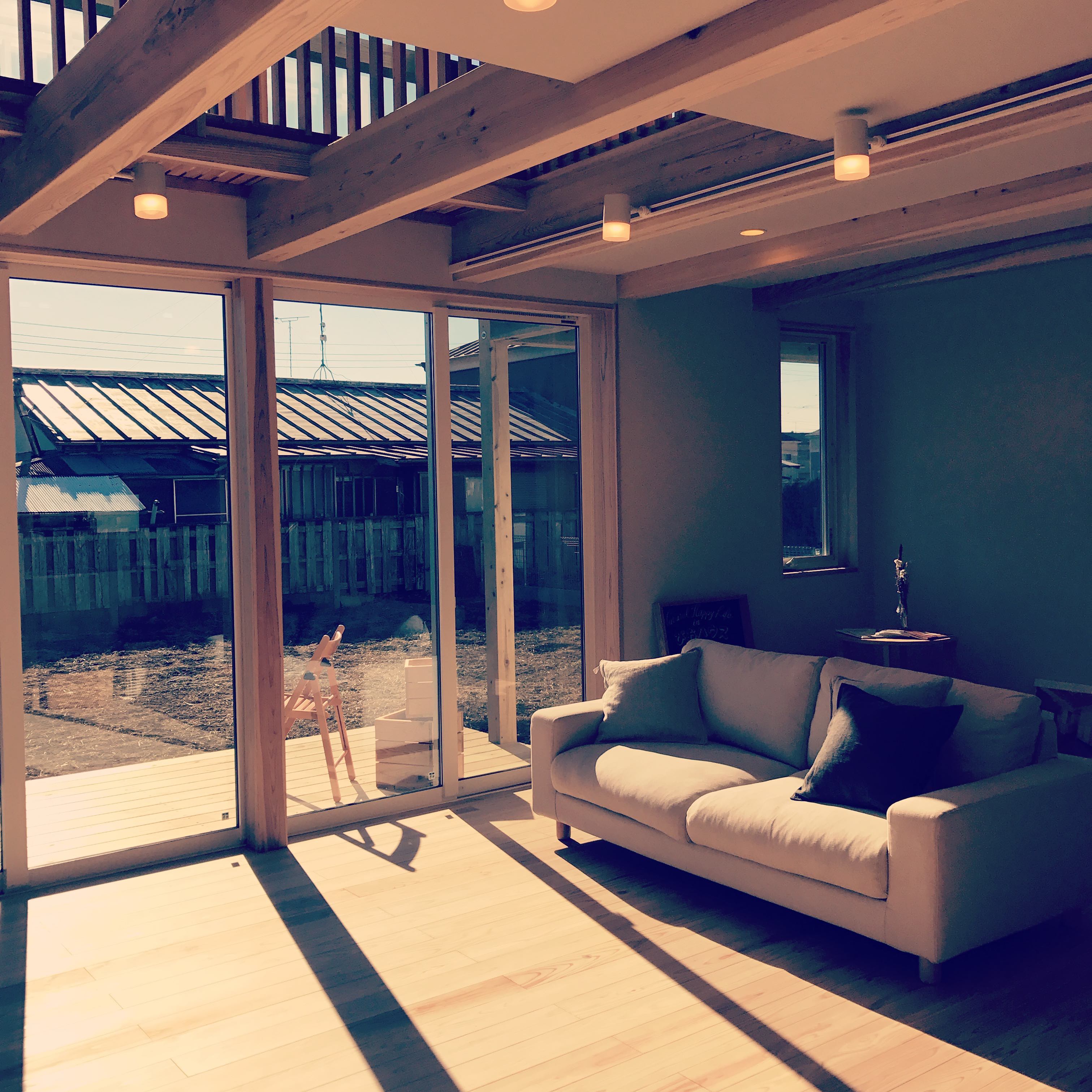 陽当りはもちろんのこと、断熱材の「セルロースファイバー」や珪藻土、無垢の杉床材のシナジーにより暖かくもあります。