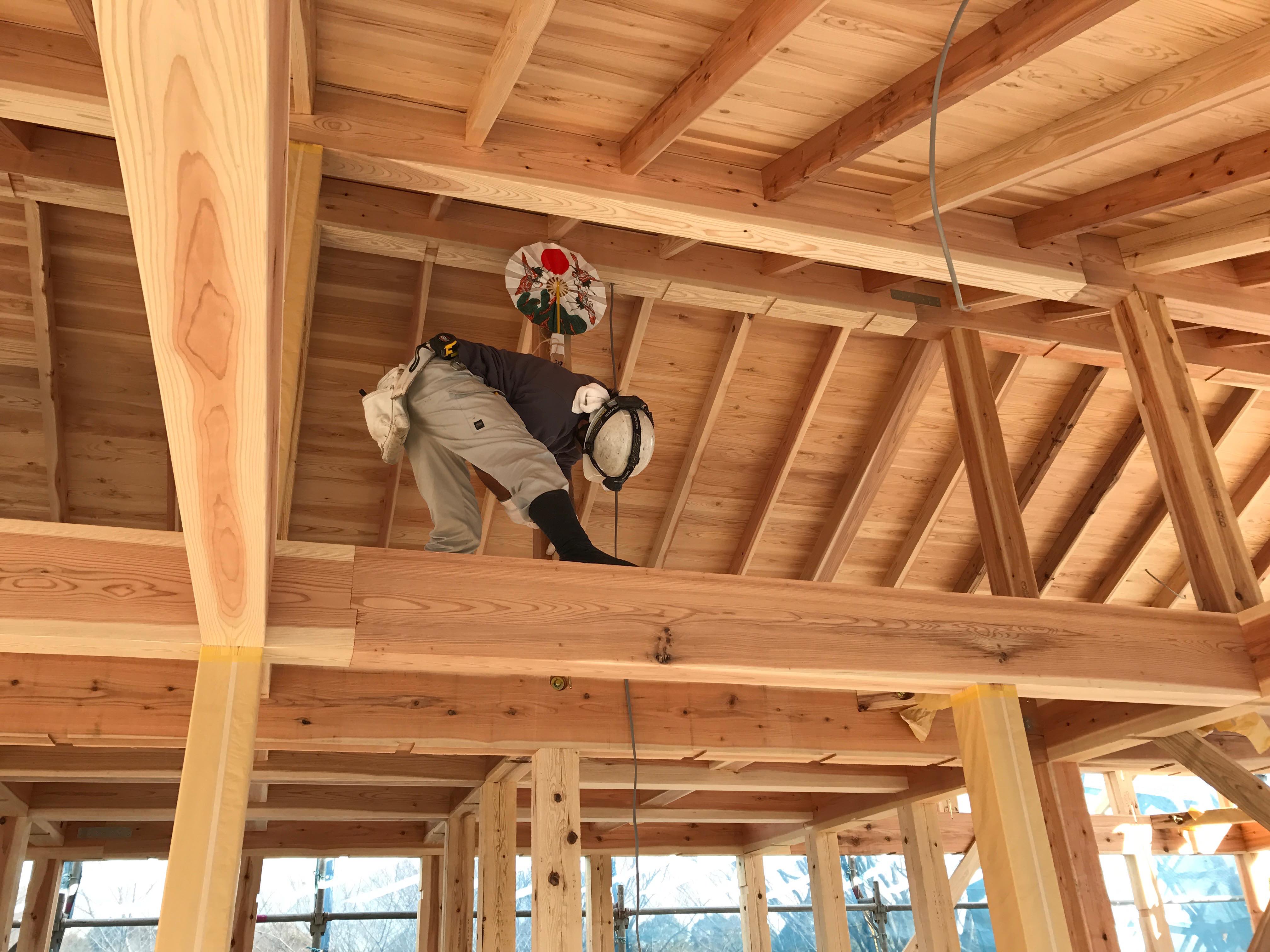 上棟した翌日に、施主様と大工と私と設計を担当した建築家と上棟式を行いました。