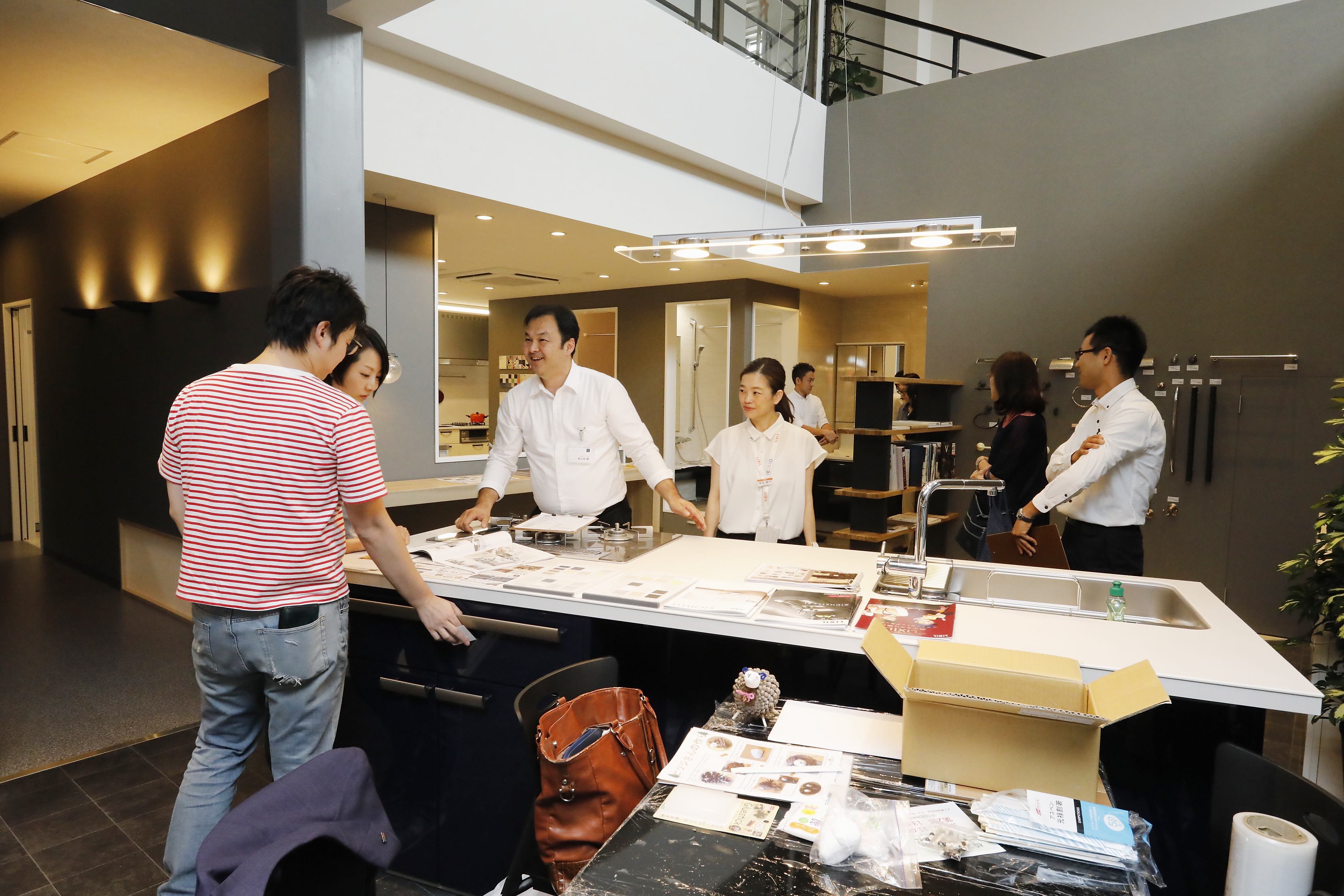 最新のキッチン7台と浴室3台をはじめ、洗面化粧台やトイレ、他にもあまり目にすることがないような紙巻器などのアクセサリー類も多数展示しています。