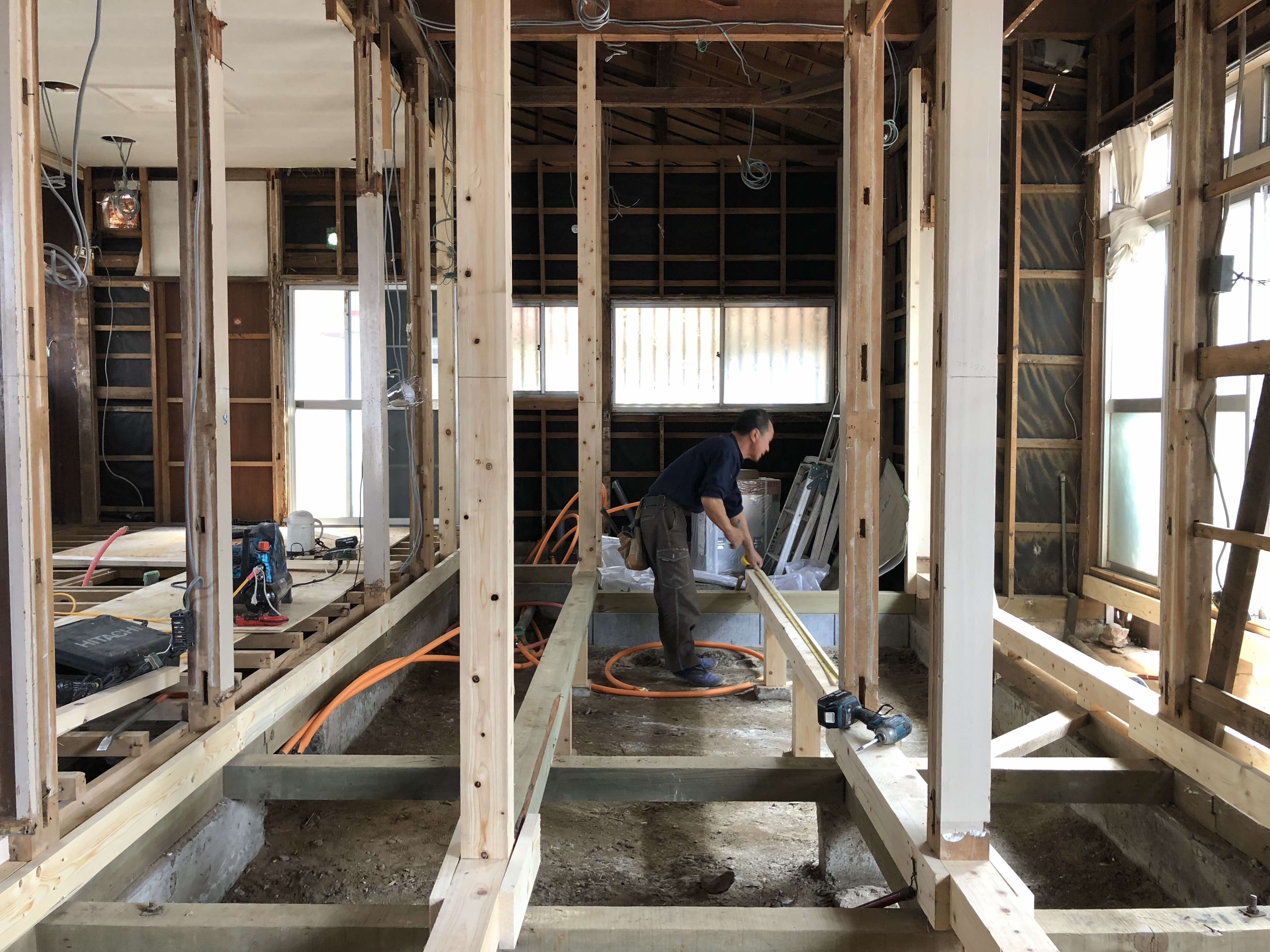 築40年の木造住宅を文字通りスケルトン状態にしてから、工事期間2ヶ月半かけて進めていきます。