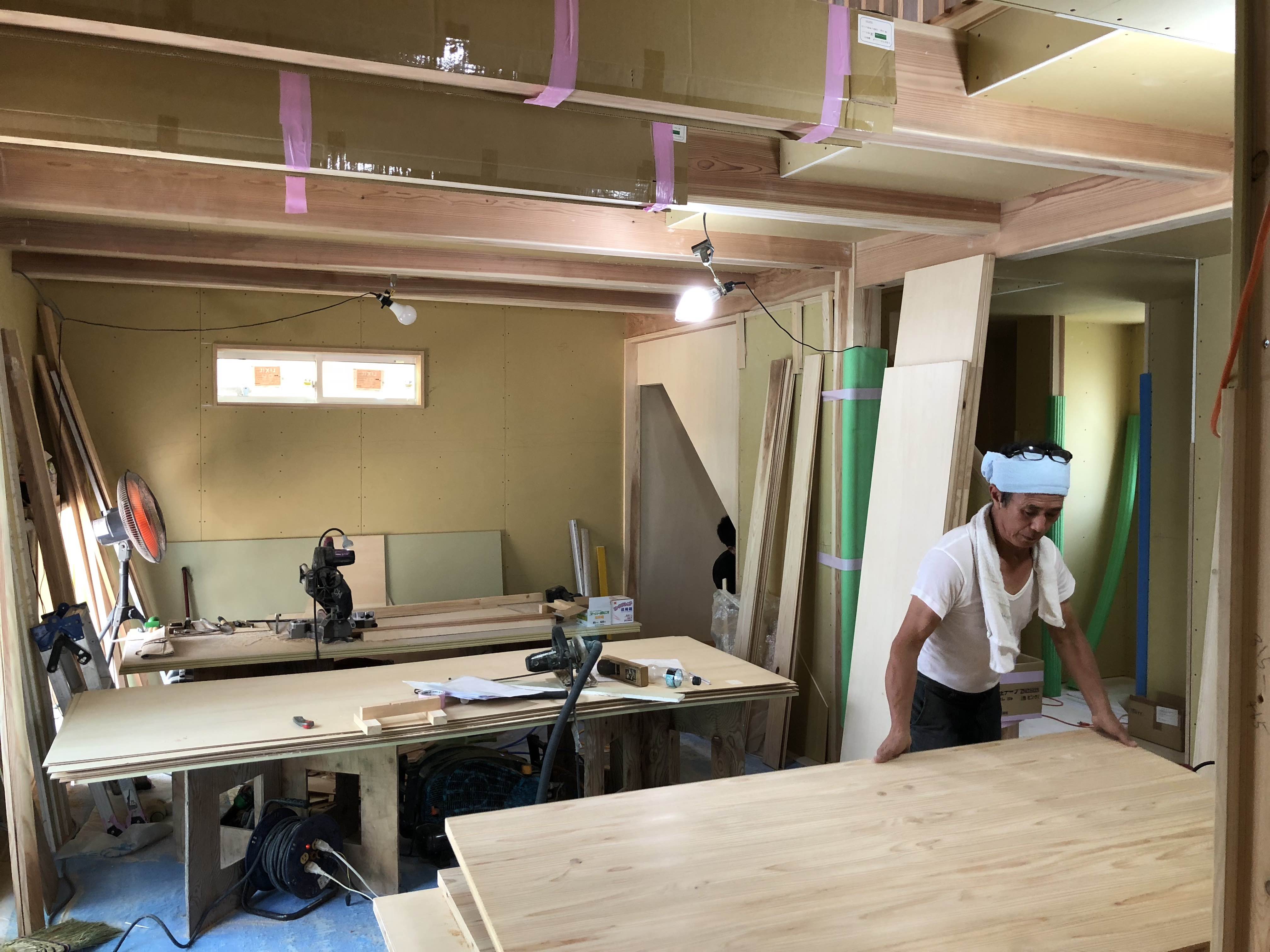 夕方、完成に近づいている現場で掃除していたら、お施主様に麦茶をいただいて、少し話をしました。