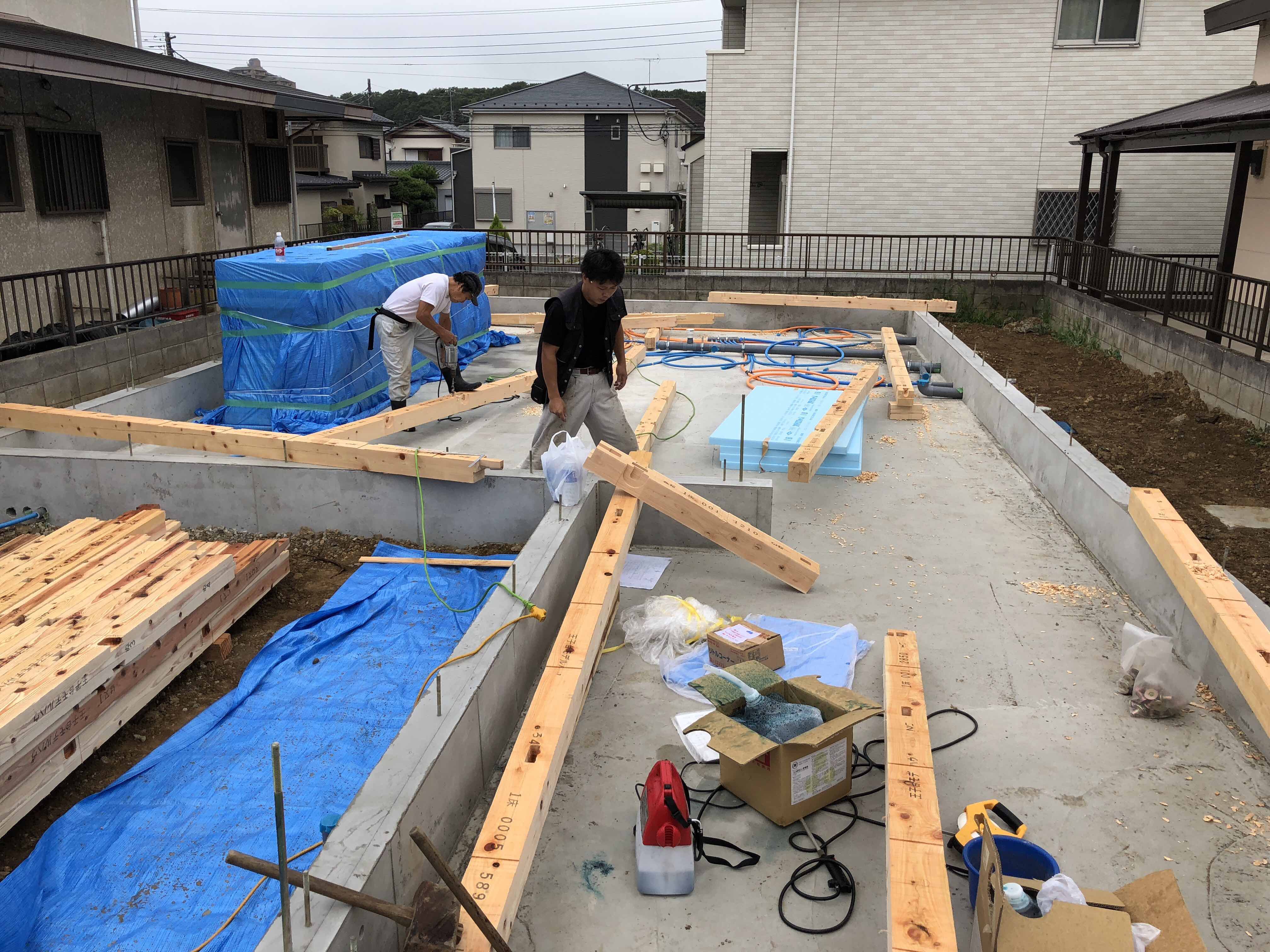 新モデルハウスは基礎工事が終わり、大工工事がはじまりました。