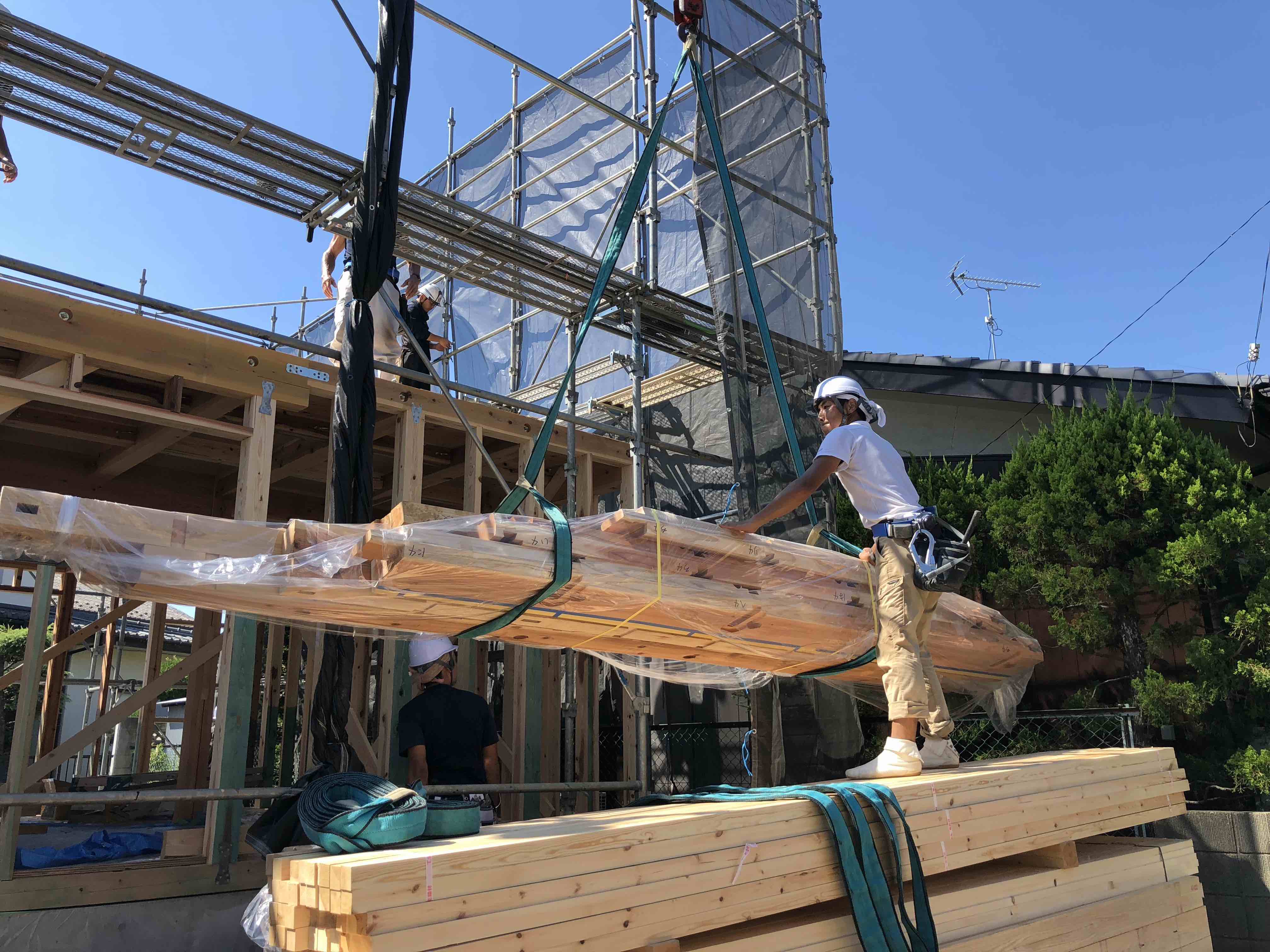 こうやって、現場で建て方工事で柱や梁などの構造材を見るたびに、当社の住宅の強さ、耐震性の高さをあらためて実感します。