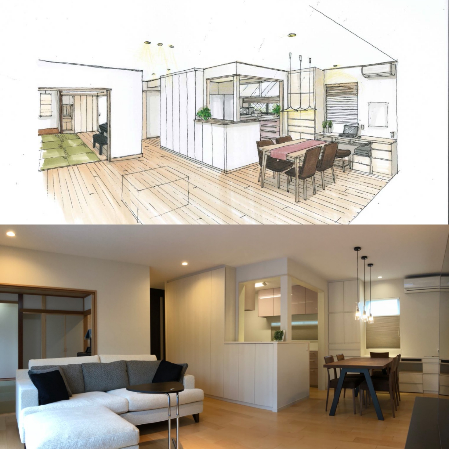 ▲当社プランナーが書いたパースとリフォーム完成後をじっくり見比べてください!
