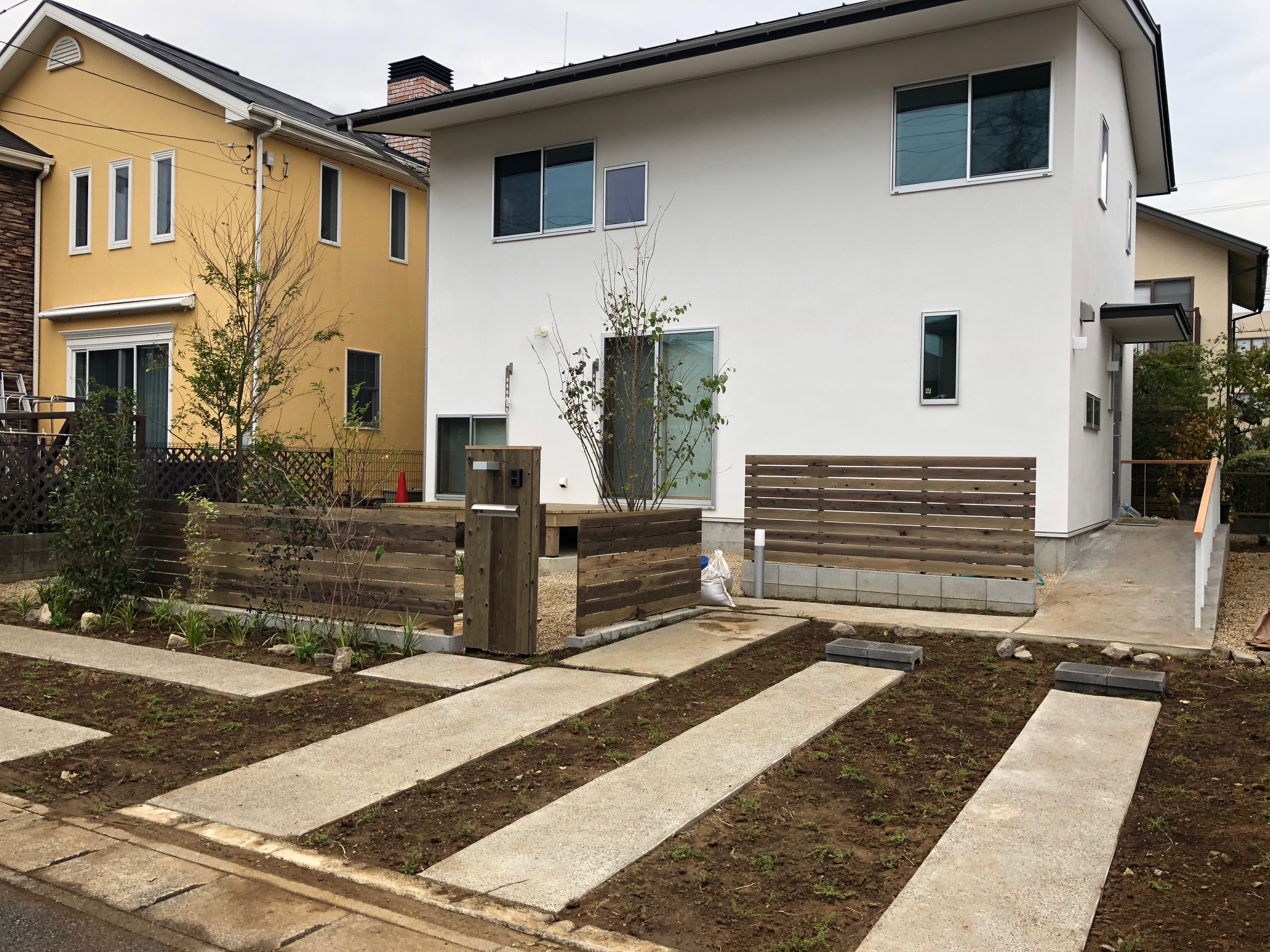 外壁を真っ白な漆喰で仕上げていたり、庭にはシンボルとなる植栽もあります。