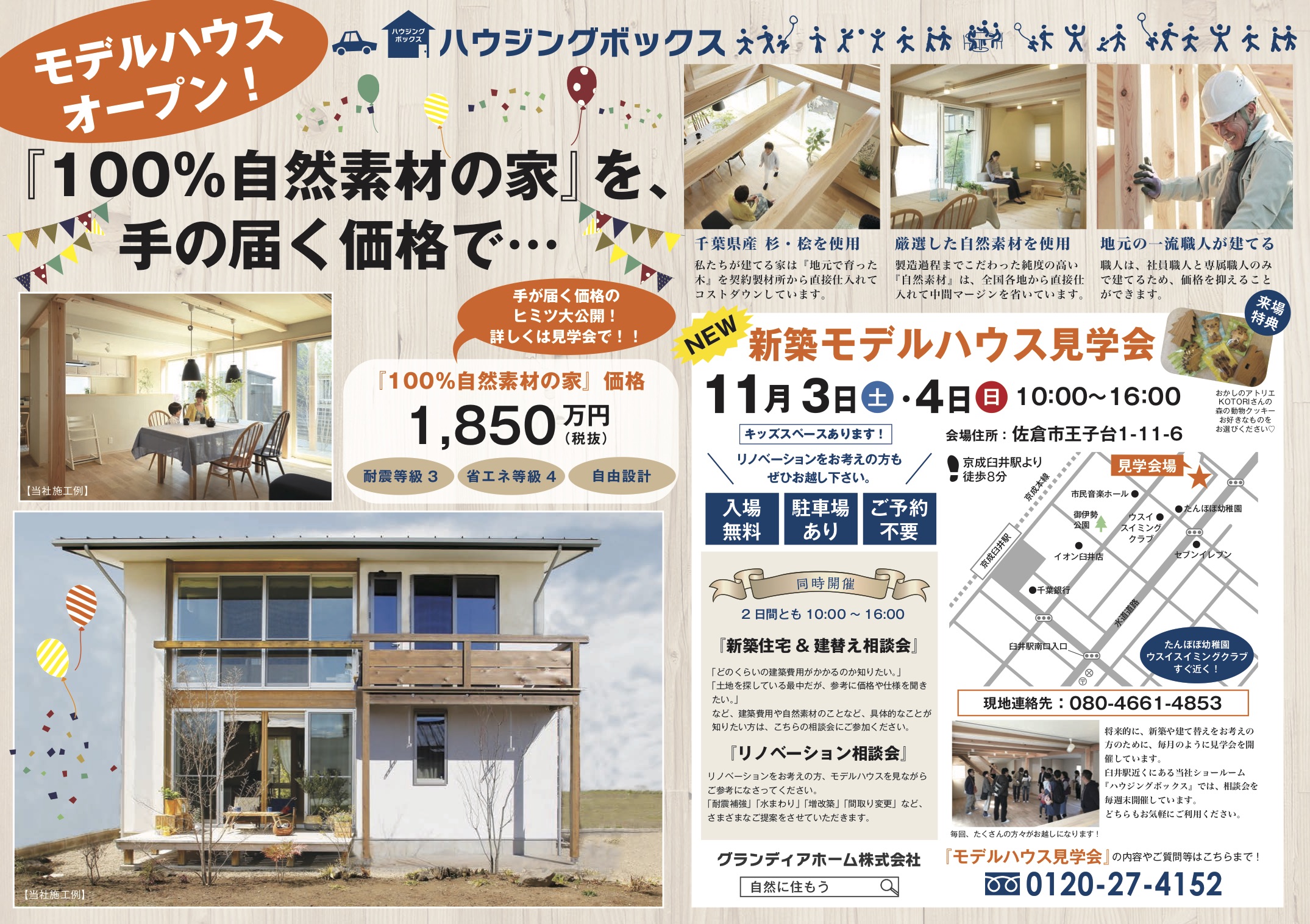 明後日、新モデルハウスがオープンします! モデルハウス 2018年11月1日 最終更新日時 : 2018年11月1日 mirai_style_admin ついに、新モデルハウスがグランドオープンとなります。 場所は、佐倉市王子台です。 すぐ近くには、臼井たんぽぽ保育園とウスイスイミングクラブがあります! 今日と明日の2日間は、グランドオープンの最終準備を行います。 詳しくは → 11月3日(土)4日(日)『新モデルハウス完成グランドオープン!』 ▲皆さま、お気軽にご来場ください! 一覧に戻る