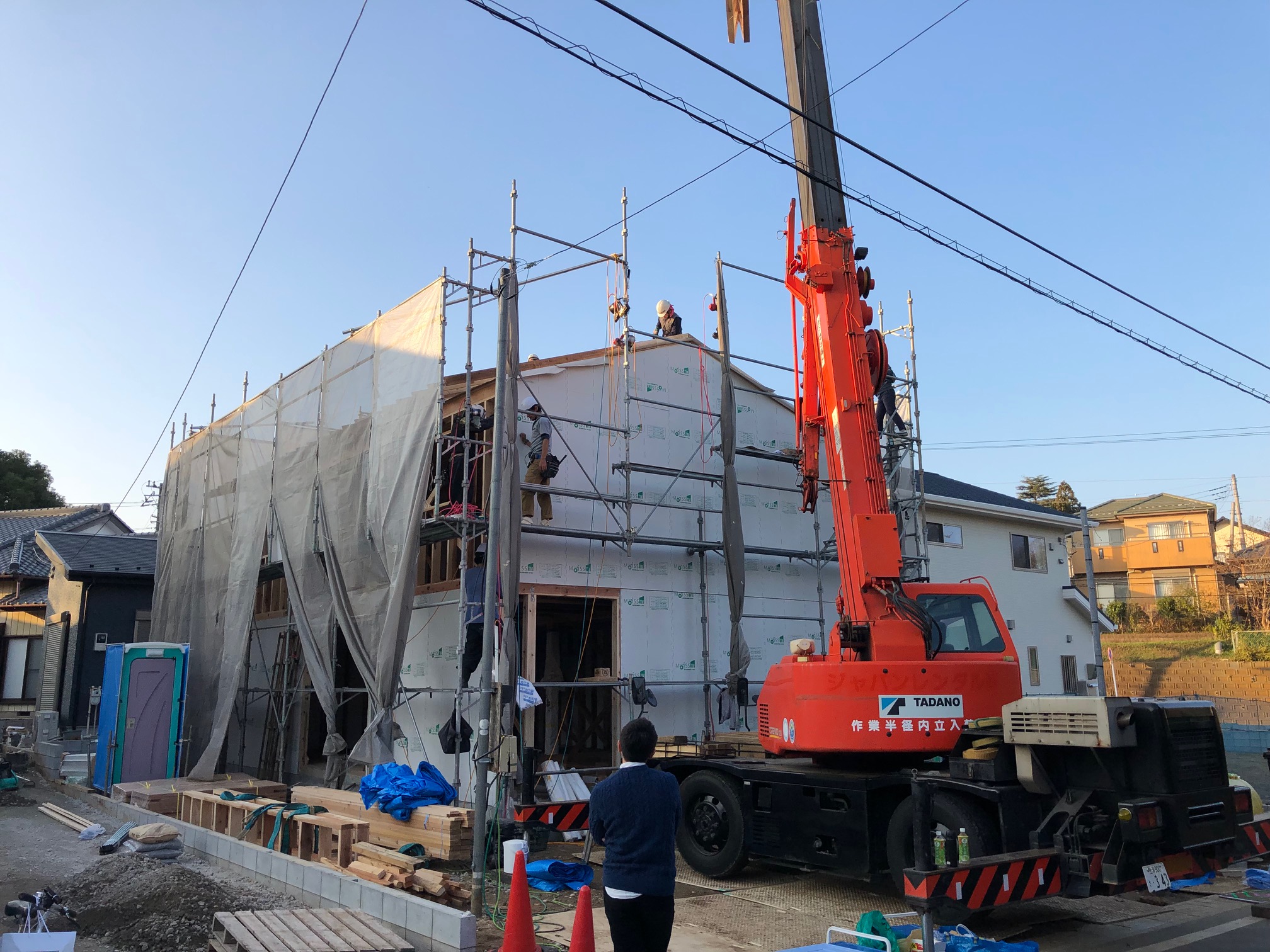 一昨日、佐倉市にて新築の建て方工事を行いました。