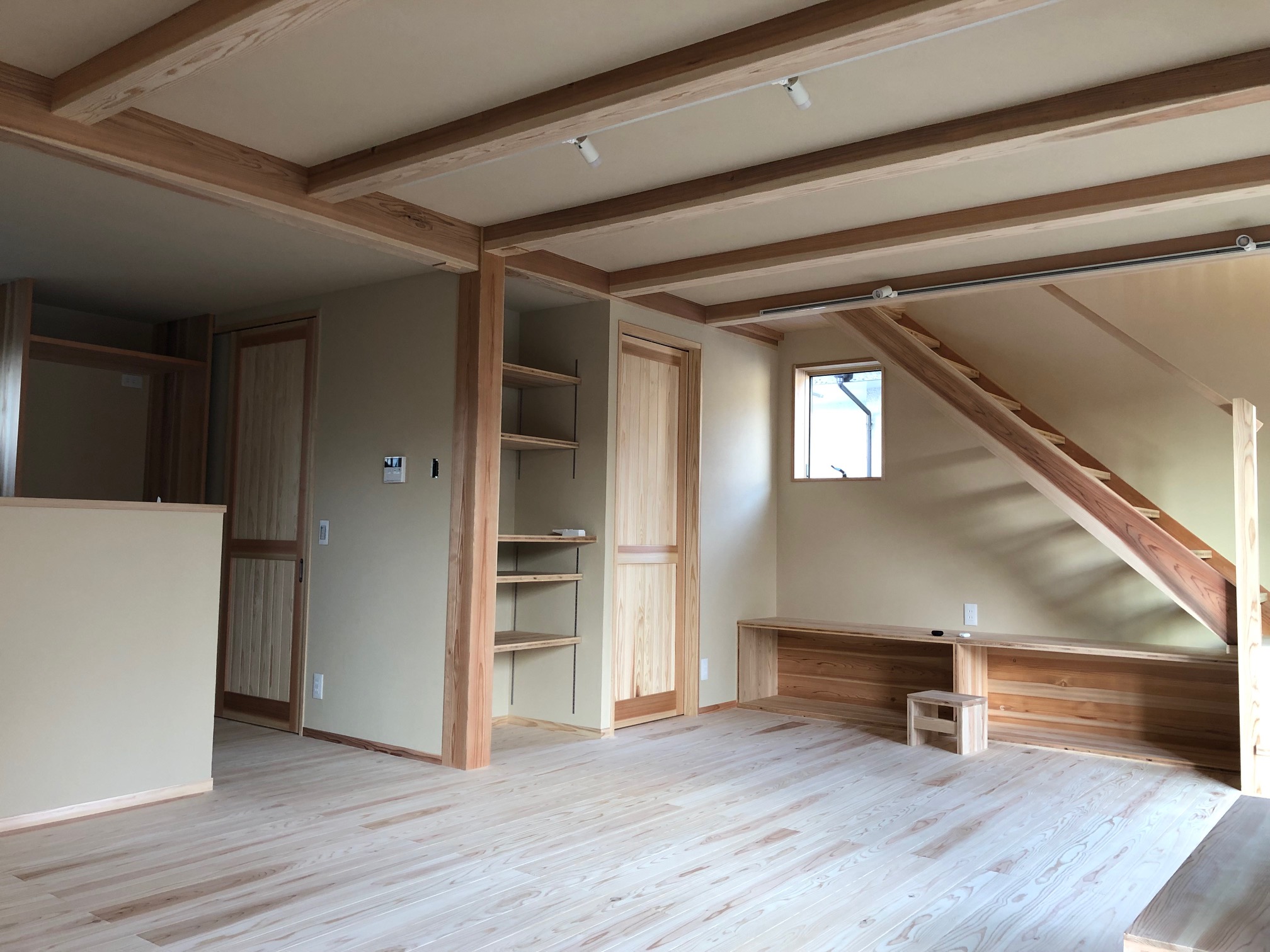 柱や梁につかっている「地元千葉の木」は、天然乾燥させている杉です。