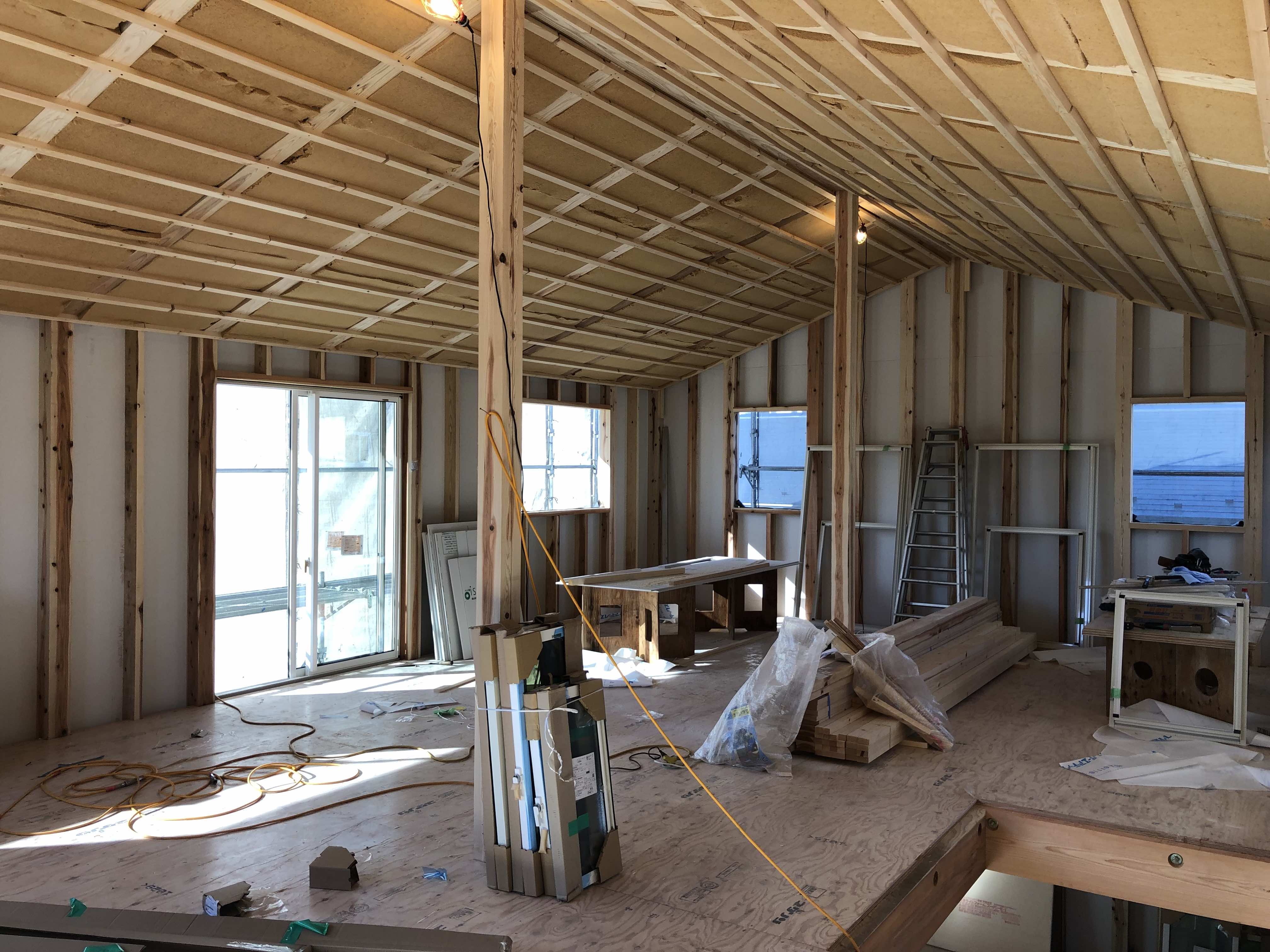 こちらの現場は、来月中旬には壁の『セルロースファイバー』の吹き込みが終わります。