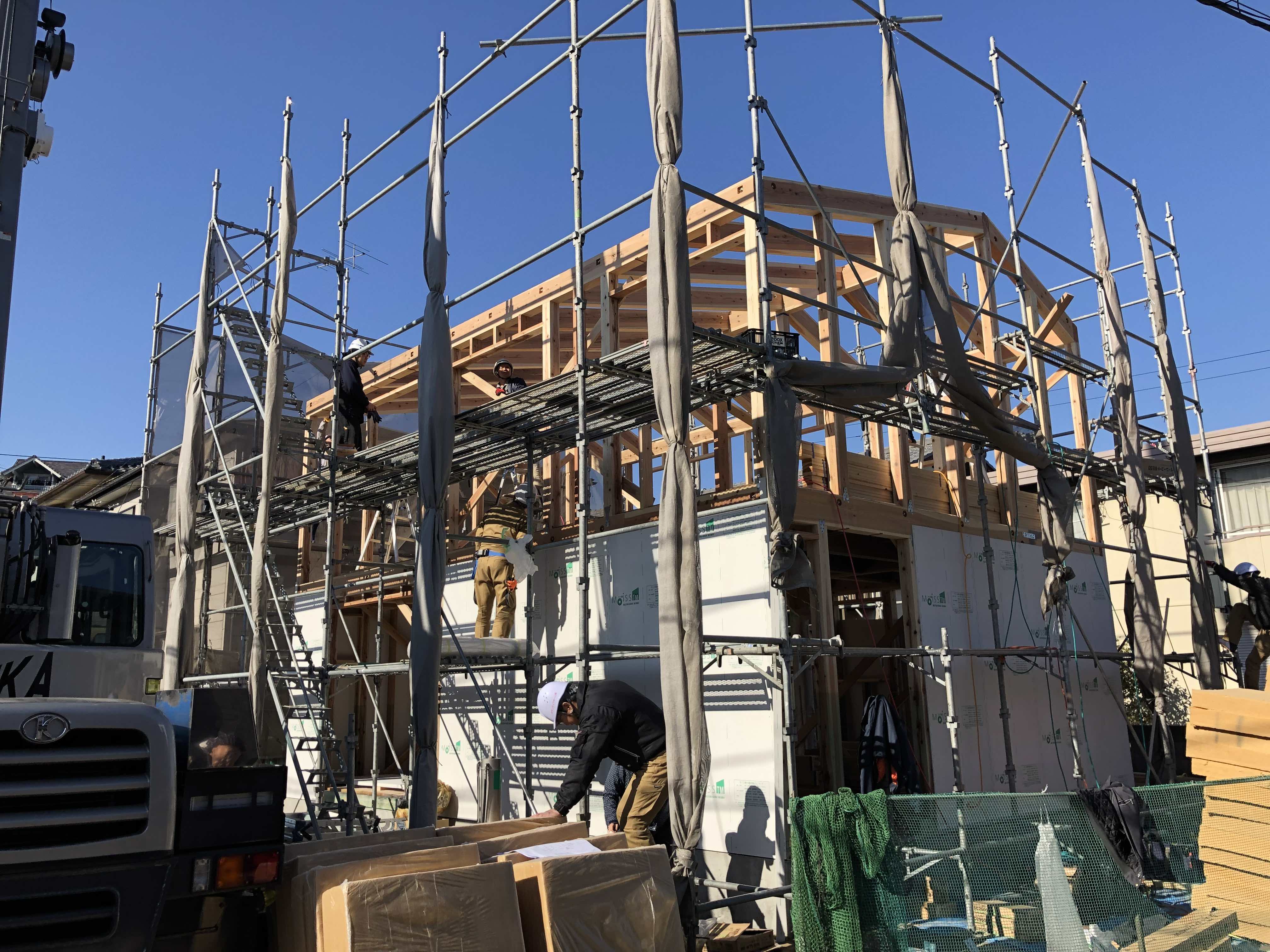 建て方工事は高所作業なので、危険が伴いますが、今回も無事に終えることができました。