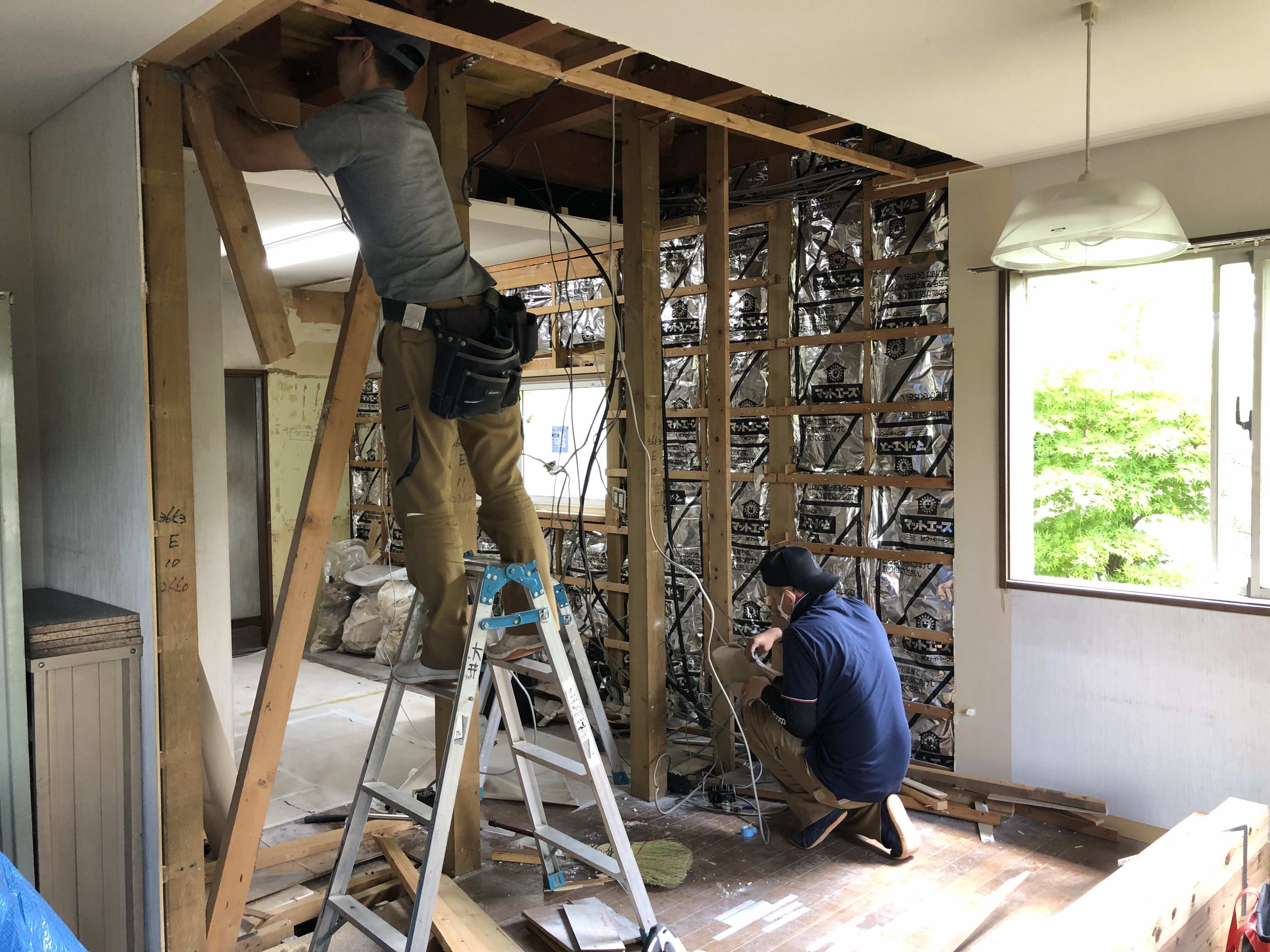 長年、住宅を支えていた柱と筋交いを撤去することで壁が無くなります。