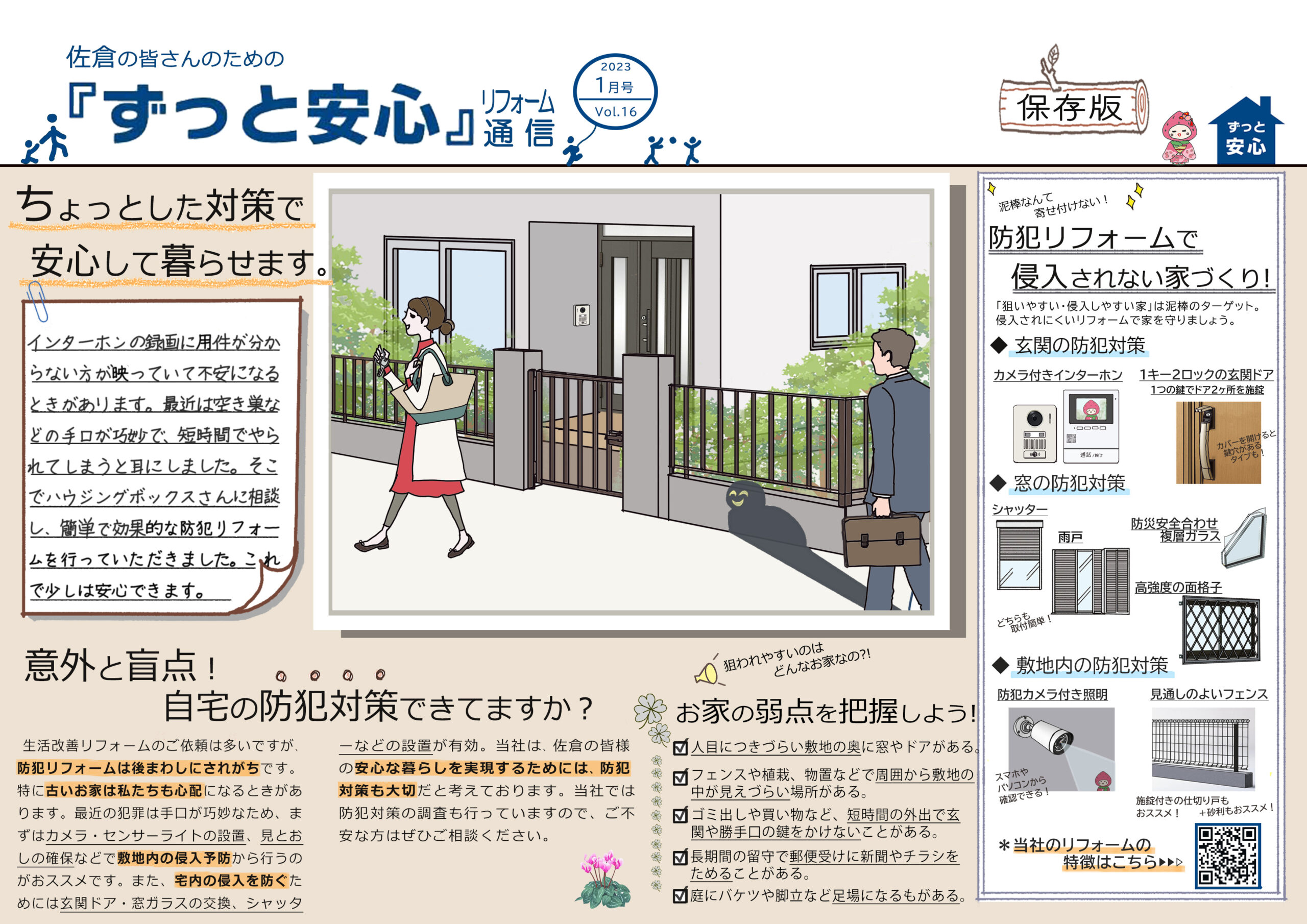 先月の『ずっと安心通信』で、ご自宅の防犯対策をまとめたのでご一読ください。