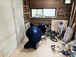 築40年になり、廊下を歩くたびにブカブカする床を補強するための作業です。私も歩いてみましたが、かなり危ない状態でした。お声がけいただいて良かったです。