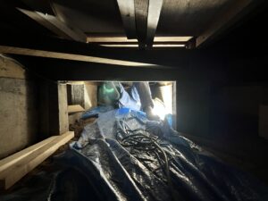 分かりにくいと思いますが、床下に大工が潜り込んで作業しています。