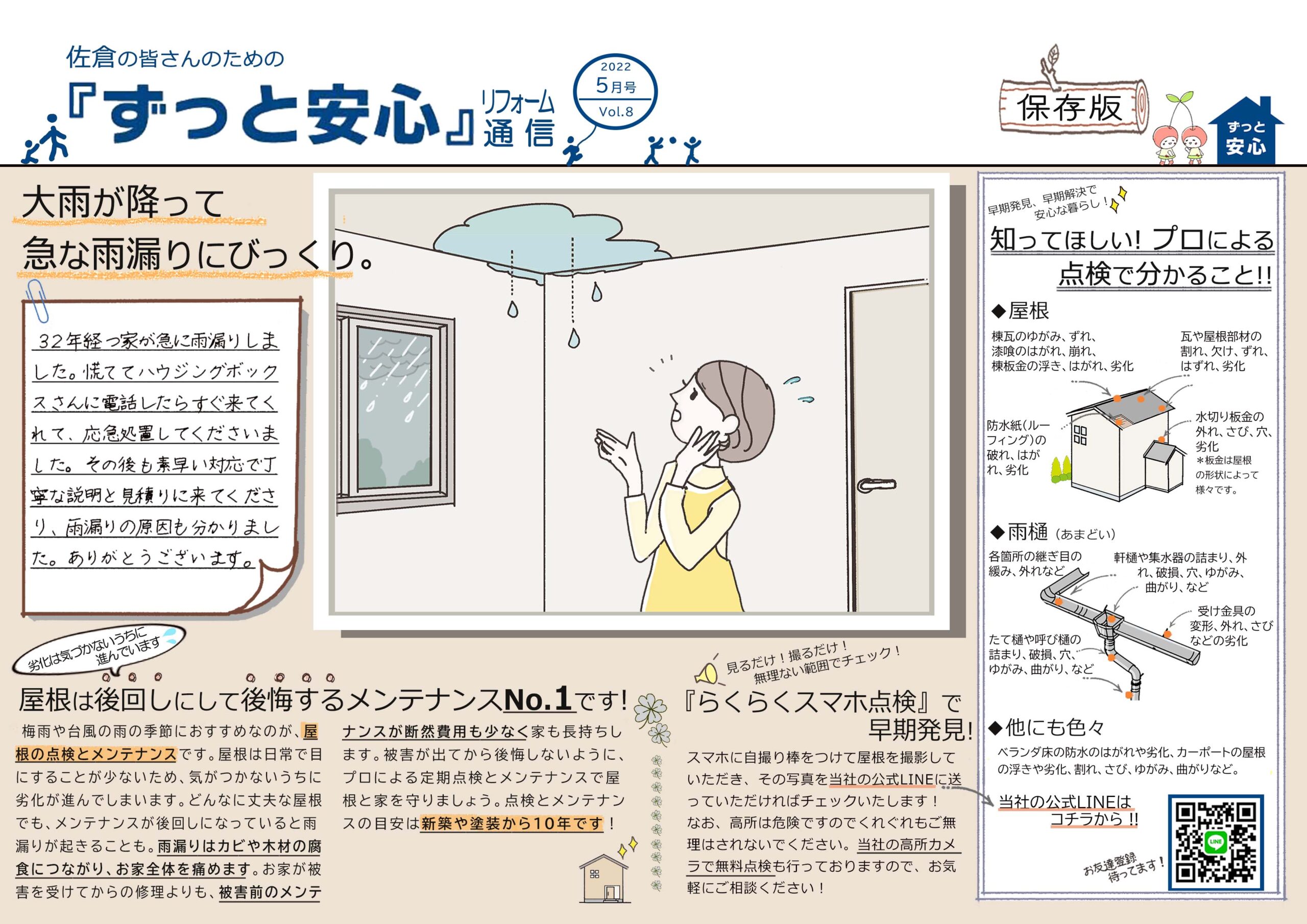 『ずっと安心通信』2022年5月号で、雨漏りを特集しました。