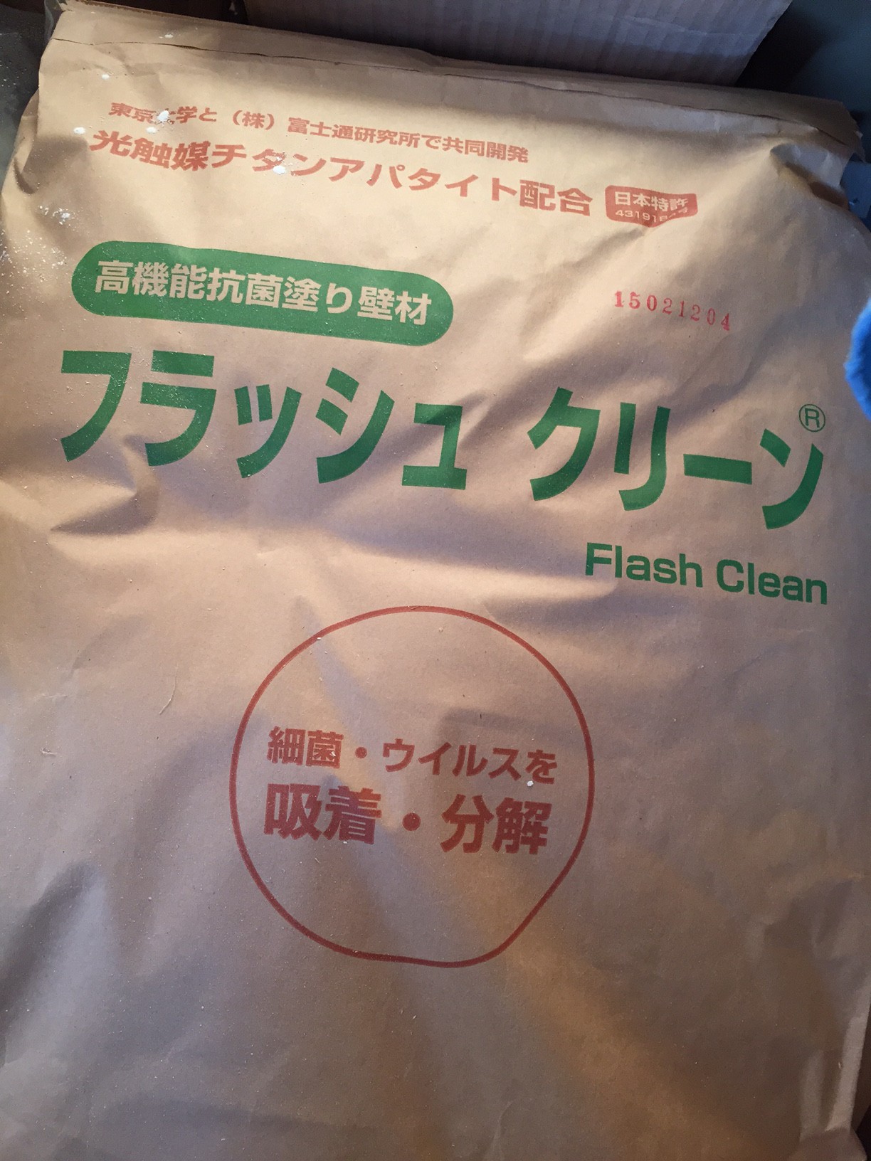 ▲光触媒チタンアパタイト配合の珪藻土『フラッシュクリーン』です。