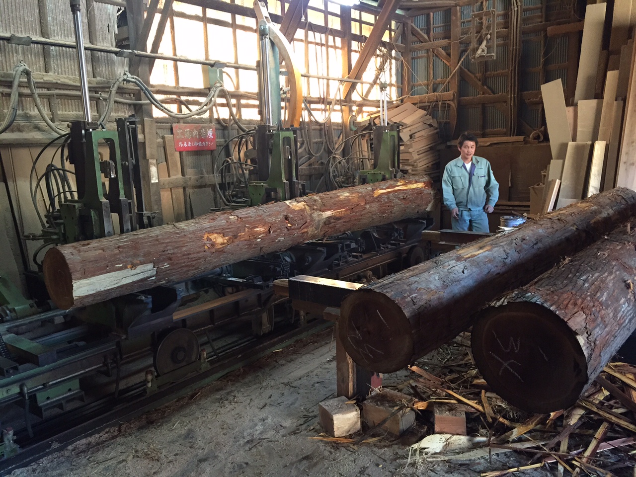 写真にとったのは、この製材所の10分の1ほどの木材です。
