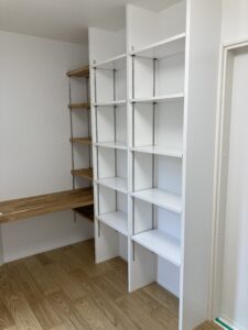 洋室リフォーム ずっと安心サポーターブログ水回り 2022年7月6日 最終更新日時 : 2022年7月6日 大川圭一 ハウジングボックスの大川です。 本日は、洋室リフォーム工事の様子をご紹介します。 元々は和室でしたが、洋室へとリフォームをしました。 造作カウンターに造作の棚と、こだわりの一部屋の完成です。 施工中の様子は次の機会に紹介いたします。 和室から洋室への改修や、間取り変更、好きな部屋をつくりたいと言う御要望にも、お応えしています。 リフォーム工事の相談は、ハウジングボックスまでどうぞ。 一覧に戻る