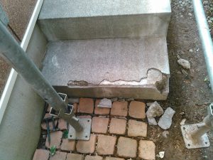人が歩く部分は劣化も早く、またモルタルが浮いてくると踏んだ拍子にずれて危ない事が