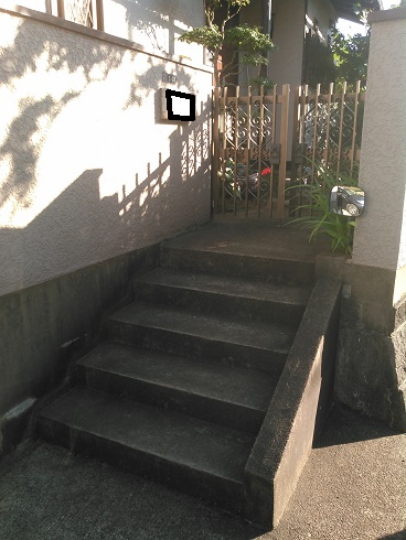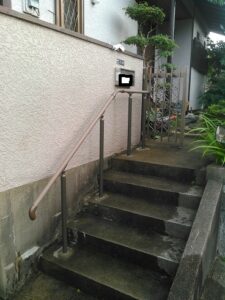 玄関に繋がる外部階段、怪我をされていない方でも若い方でも大変なのは一緒・・・。
