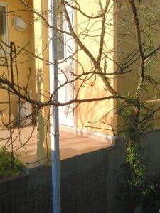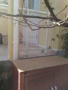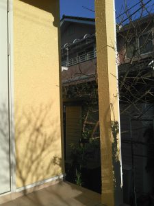 ポーチ柱と玄関脇の間に、白いフェンスを立てるご提案をしました。