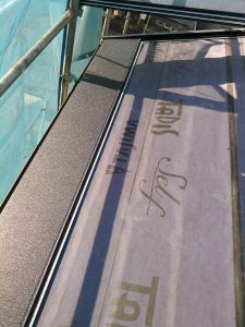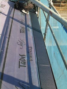 既存のスレート(コロニアル)屋根の上にゴムアスルーフィングを張り、