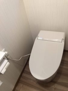 新しいトイレはタンク無しのタイプで水道管もトイレの中に納まる