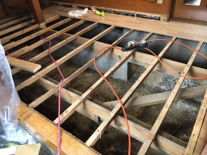 大工さんにて古いフローリングを解体し、今日明日の二日間で新しいものを貼っていきます。