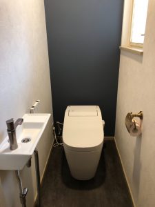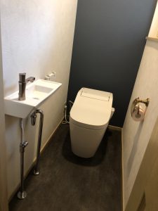 タンクレスのアラウーノと、手洗いの新規施工となりました。