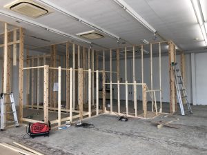 間仕切り壁の下地となる柱が立っています。