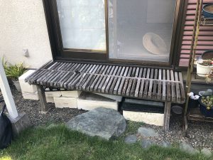 こちらが交換前の濡れ縁です。長きにわたり常用され、木部が経年劣化しています。